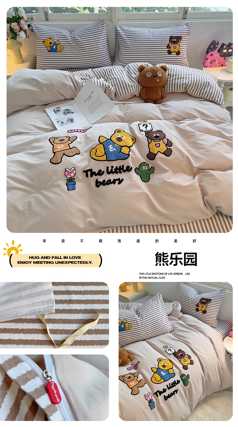 (总)炫拼家纺 2025新款A类全棉40支水洗棉毛巾绣四件套-卡通多巴胺,面包熊,快乐时光,欢乐派对,酷仔小树,快乐伙伴,潦草小狗,美猴王,惬意时光,小黑熊,一起嗨,No-1