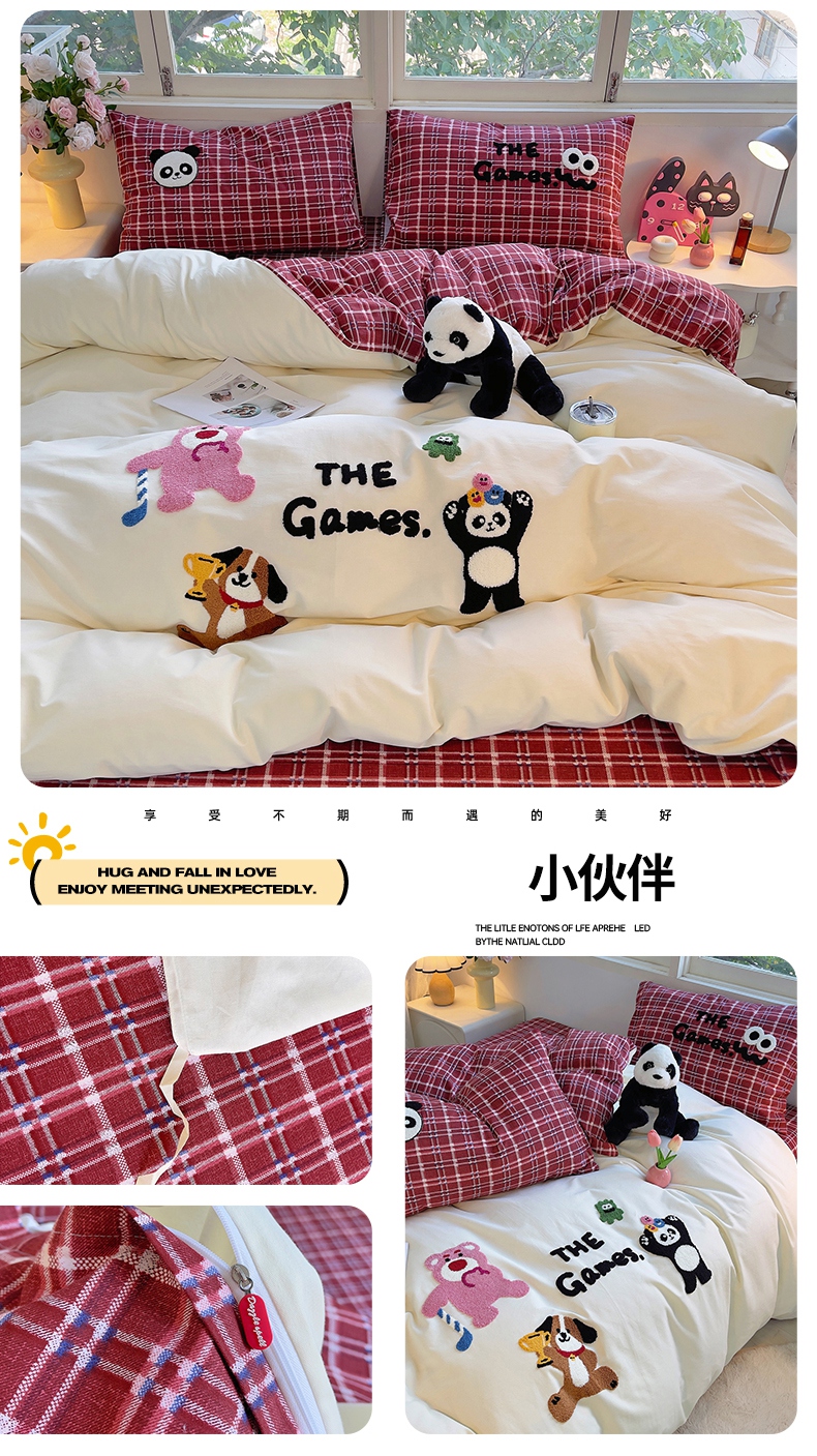 (总)炫拼家纺 2025新款全棉磨毛卡通贴布绣加厚毛巾绣纯棉四件套-曲奇系列,曲奇-苹果狗,曲奇-Good卡皮,曲奇-波点猫,曲奇-好朋友,曲奇-红军熊猫,曲奇-举高高,曲奇-晚安猫