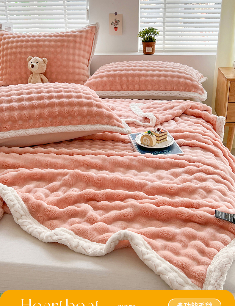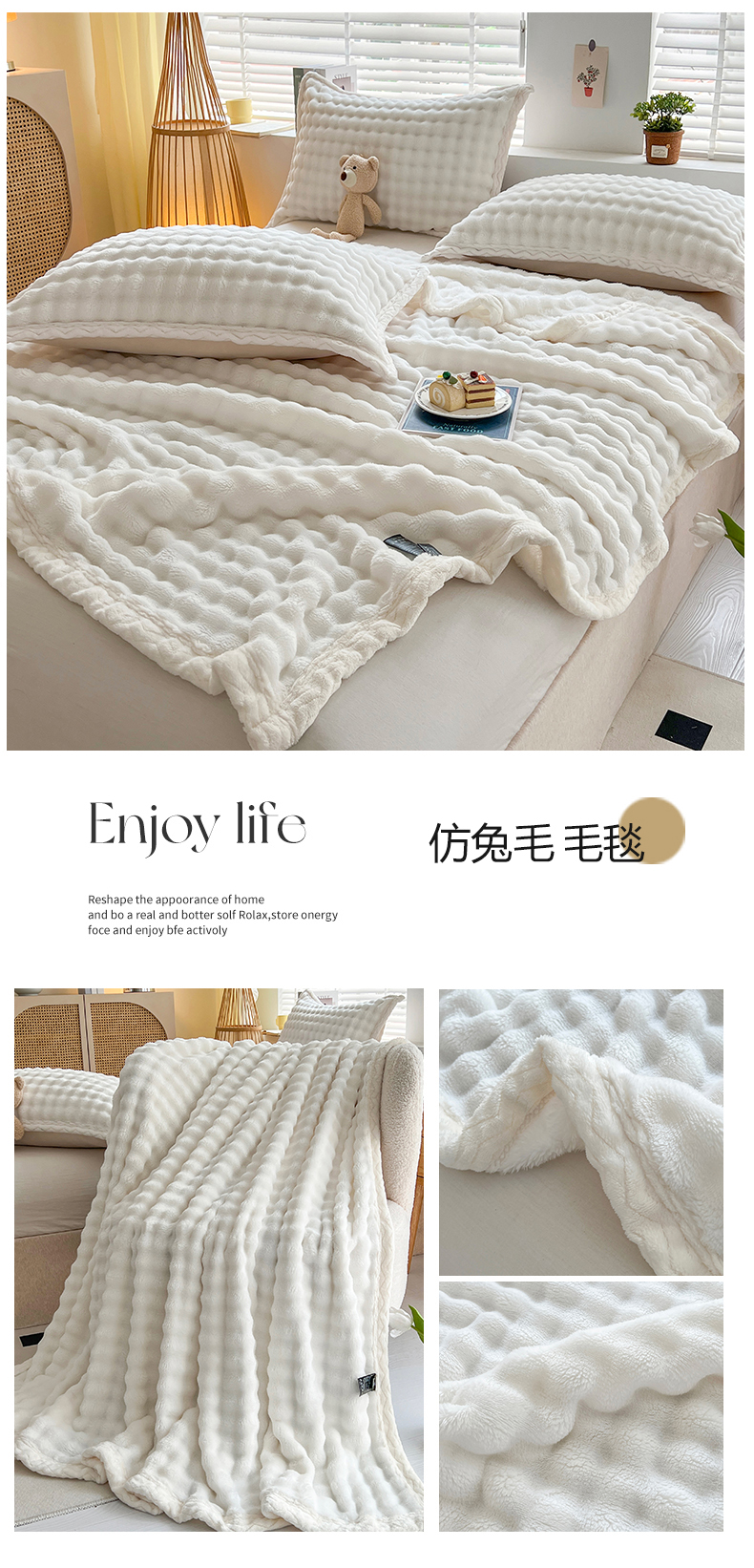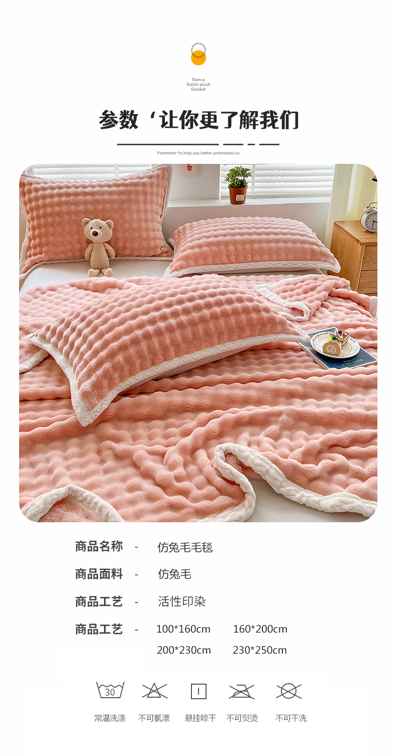 商品名称:栩裕纺织 2025新款简约仿兔毛泡泡绒毛毯系列-包边款 咖色