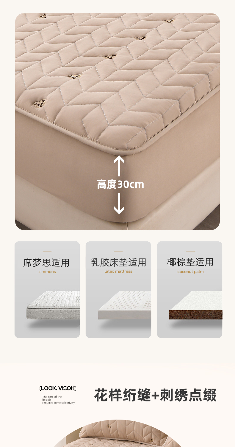 (总)推推家纺 2025新款刺绣夹棉宝宝绒床笠牛奶绒床垫保护套,三色熊-蓝色,郁金香-米白,郁金香-酒红,郁金香-蓝色,郁金香-深灰,三色熊-酒红,三色熊-米白,三色熊-深灰