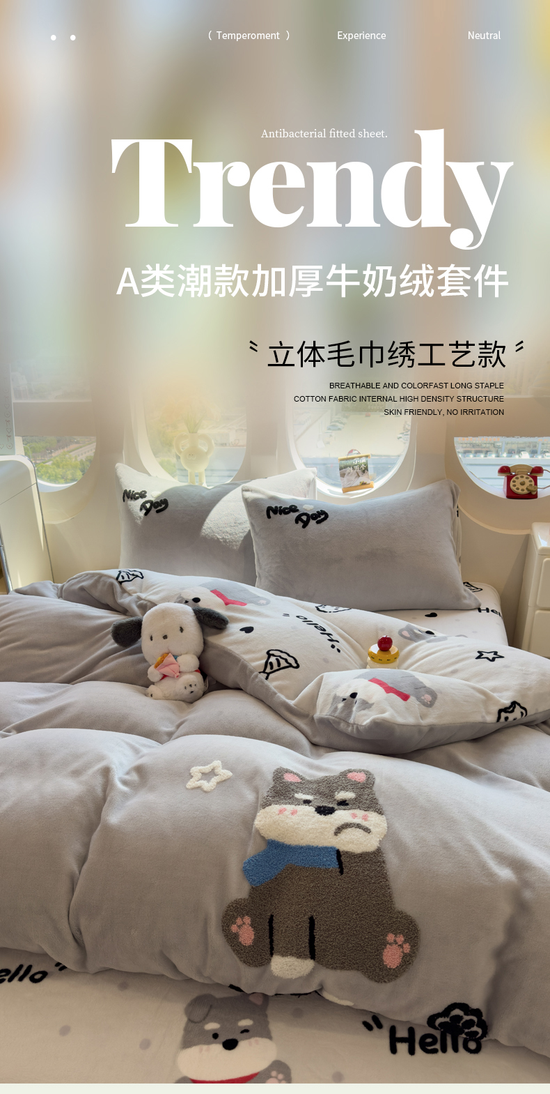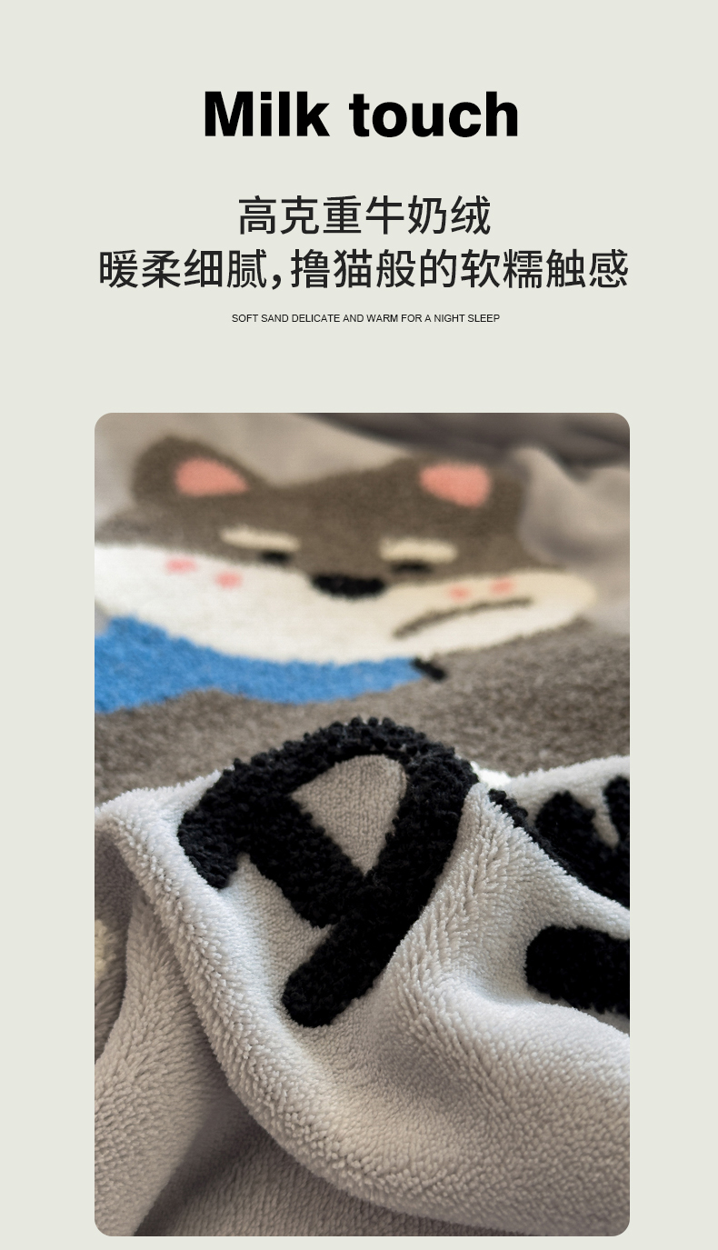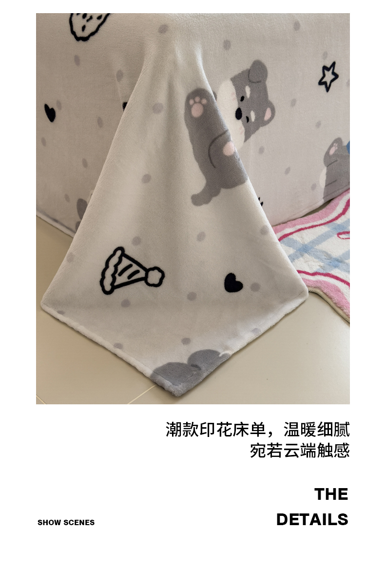 当前位置: 91家纺网 > 商品网购 > 床品套件 > 四件套 > 牛奶绒四件套 > 丝羽坊 2025新款A类潮款加厚牛奶绒四件套 灰调萌犬