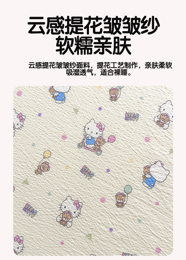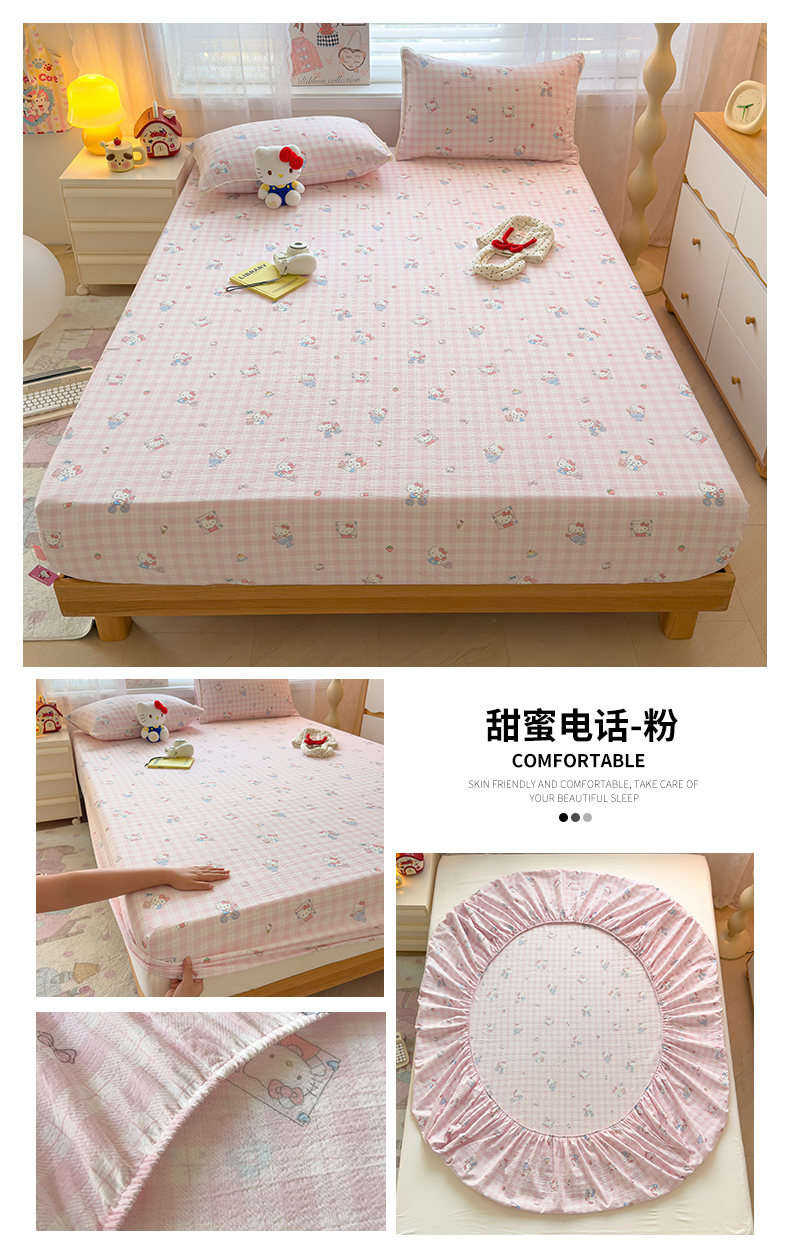 (总)梦庭帛美 2025新款高克重110克云感提花皱皱纱正版三丽鸥床单,甜蜜电话-粉,条纹KT,童趣美乐蒂,彩绘小奶猫,木马美乐蒂,时尚库洛米,甜蜜电话-蓝,粉樱凯蒂,奶芙KT