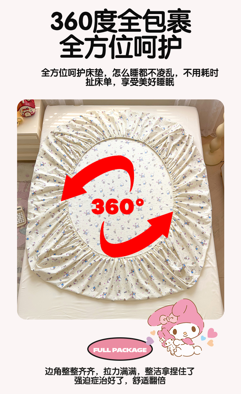 商品名称:梦庭帛美 2025新款高克重110克云感提花皱皱纱正版三丽鸥床笠 时尚库洛米
