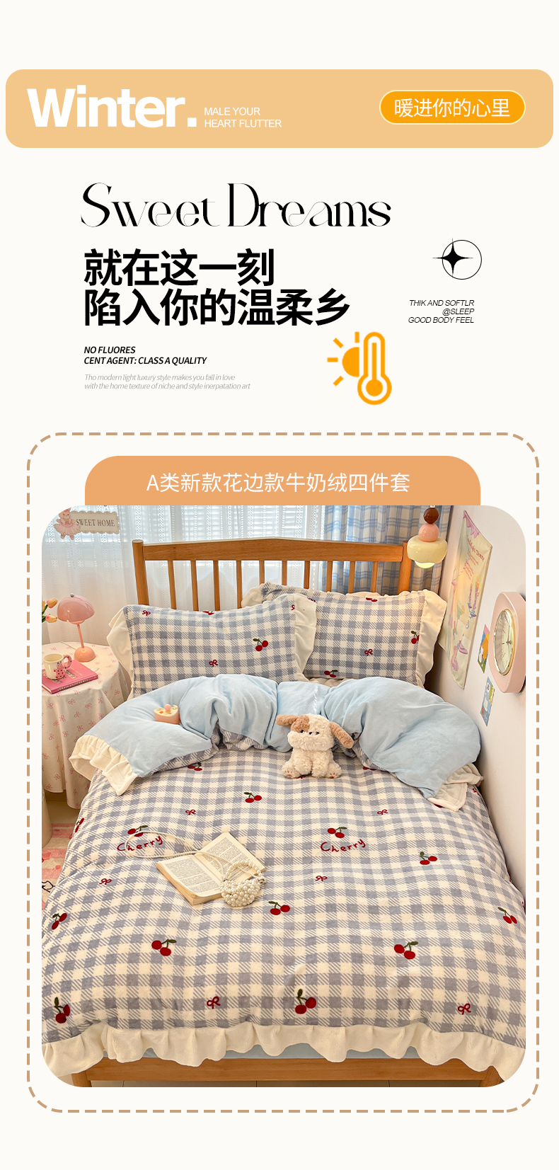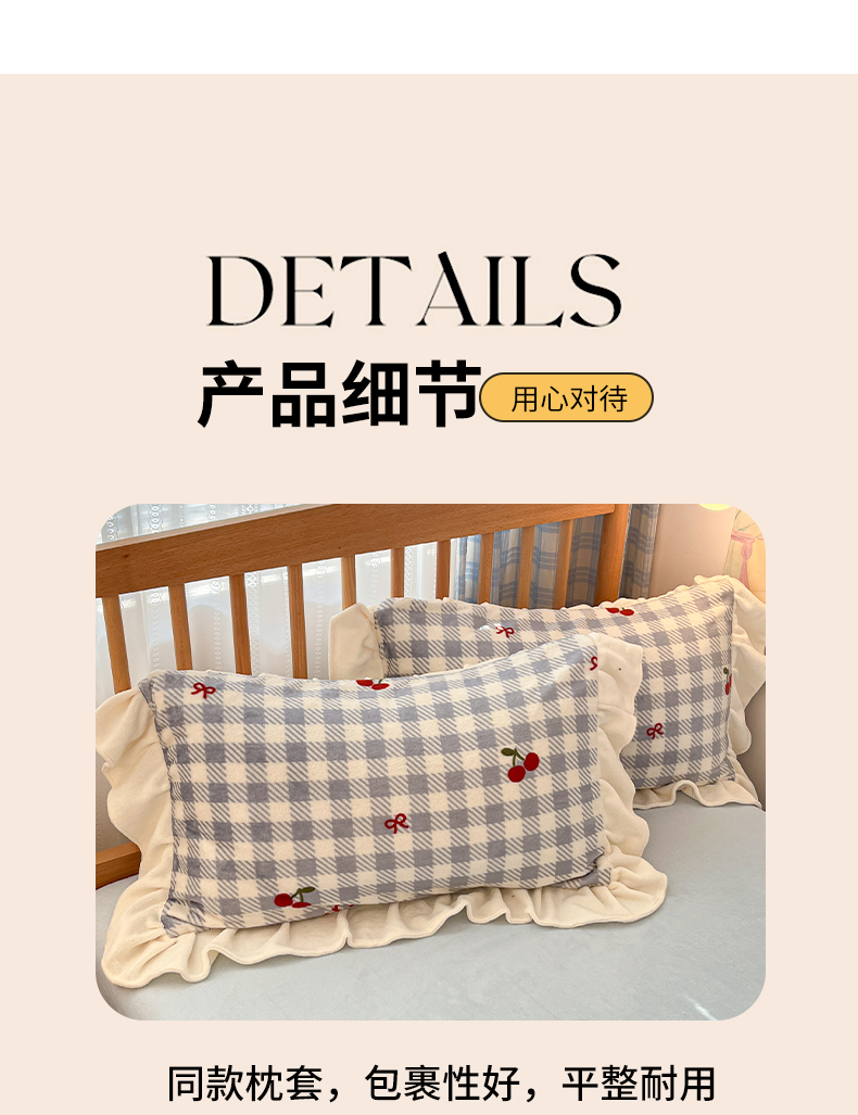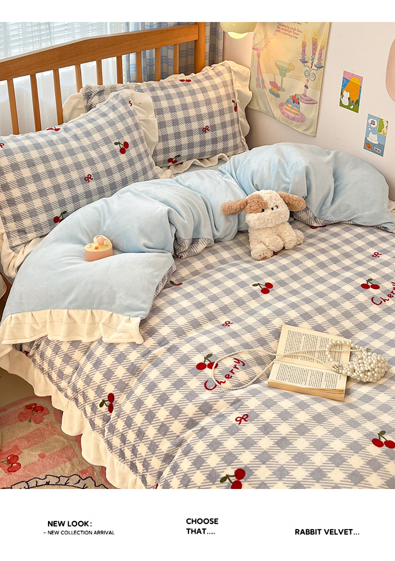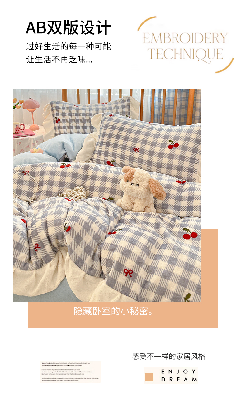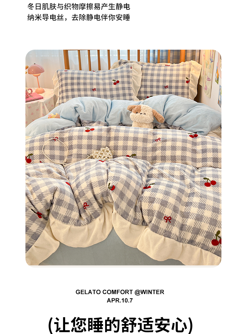 当前位置: 91家纺网 > 商品网购 > 床品套件 > 四件套 > 牛奶绒四件套 > 川悦生活 2025新款A类韩版花边牛奶绒四件套 花边青天车厘