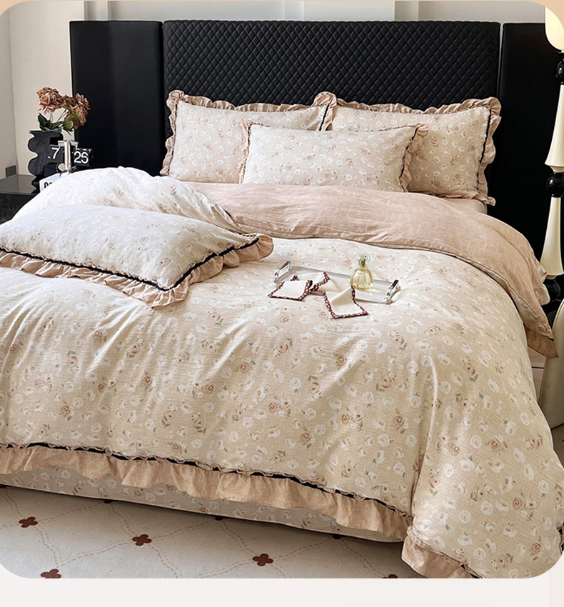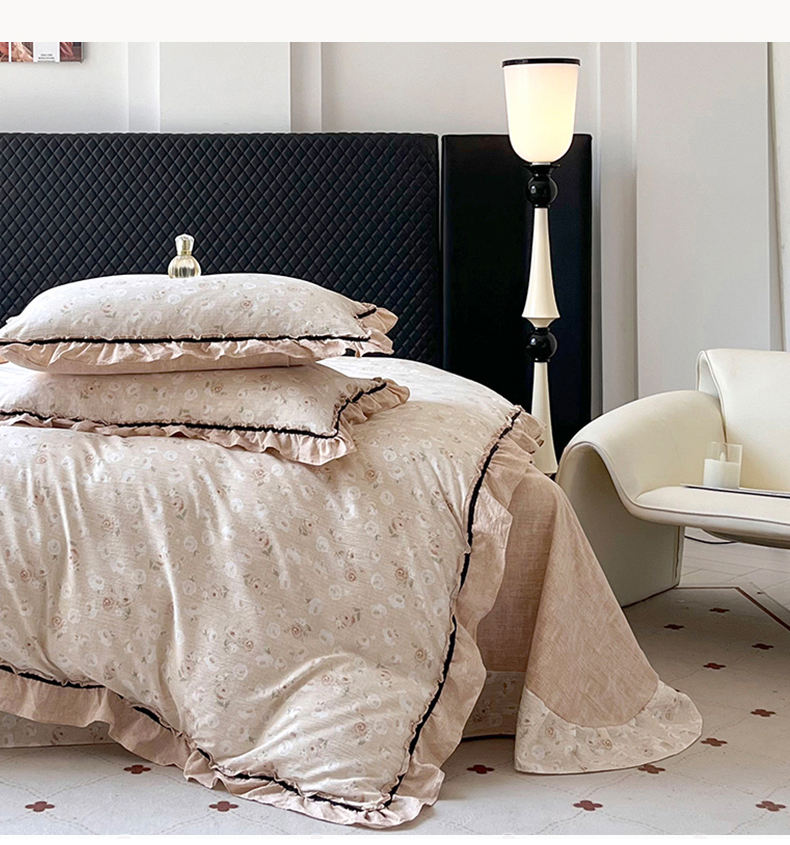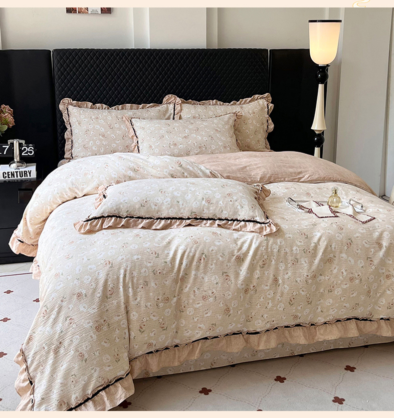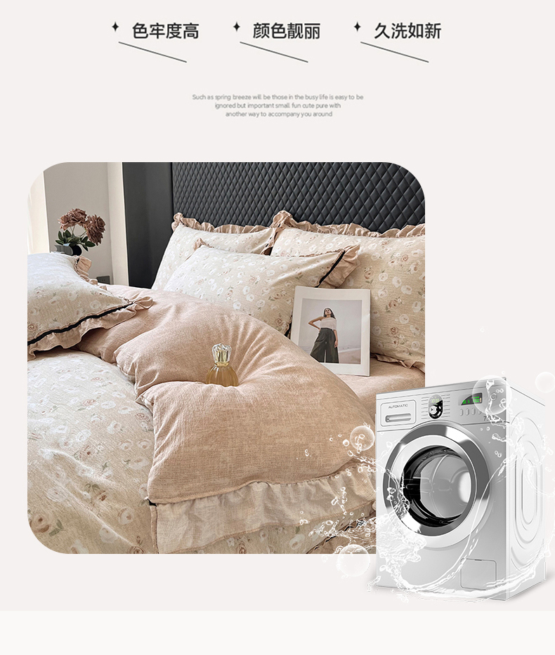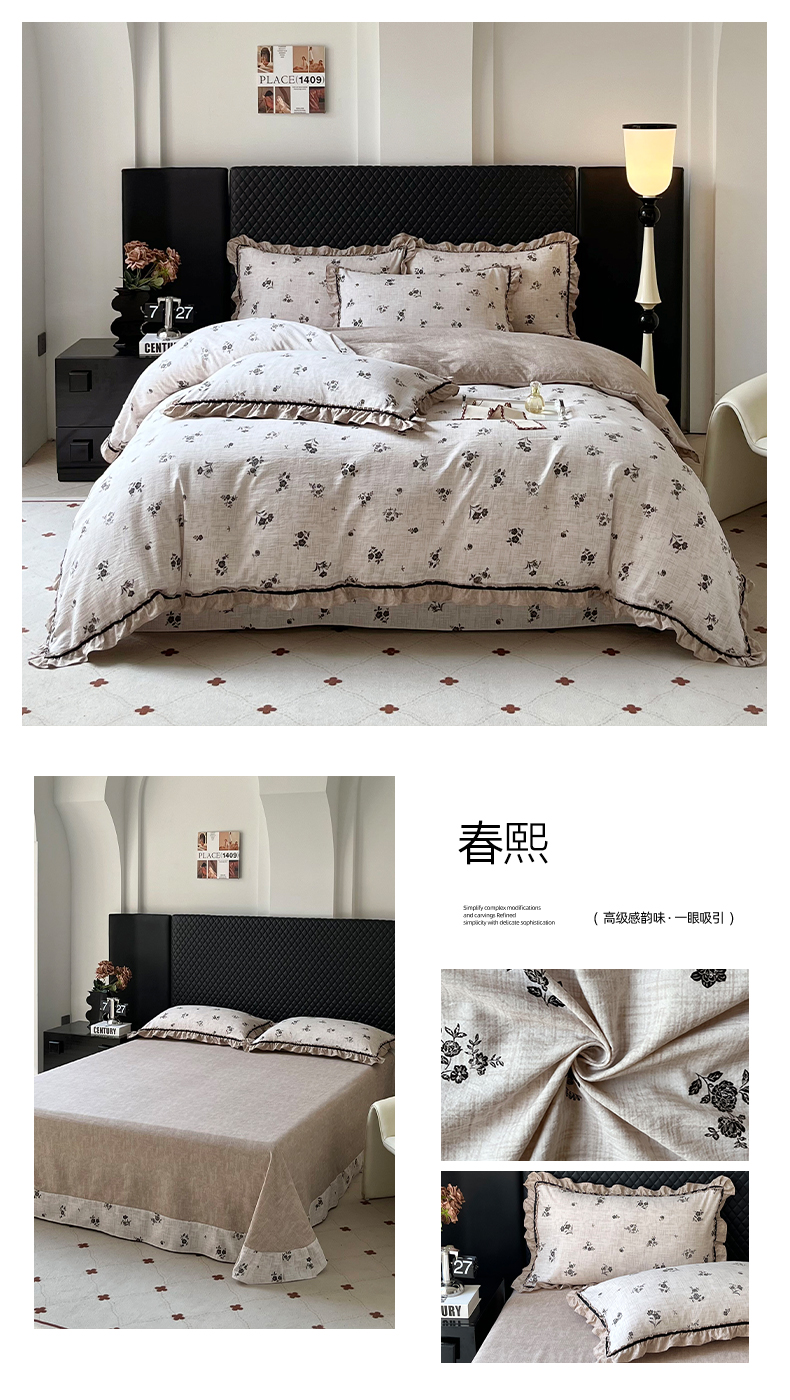 (总)金纱玉纺家纺 2025新款古法水洗花边床裙床单四件套,春熙,希露-灰,希露-紫豆沙,仙韵-黄,仙韵-绿