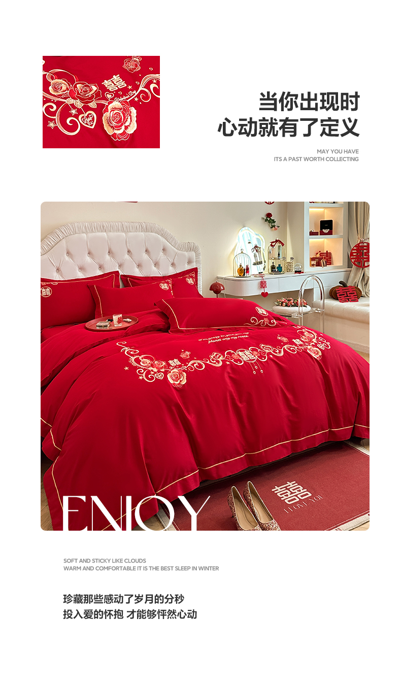 (总)金麦家纺 2025新款亲肤提花面料刺绣婚庆四件套-婚庆系列,热情玫瑰,喜悦,永恒