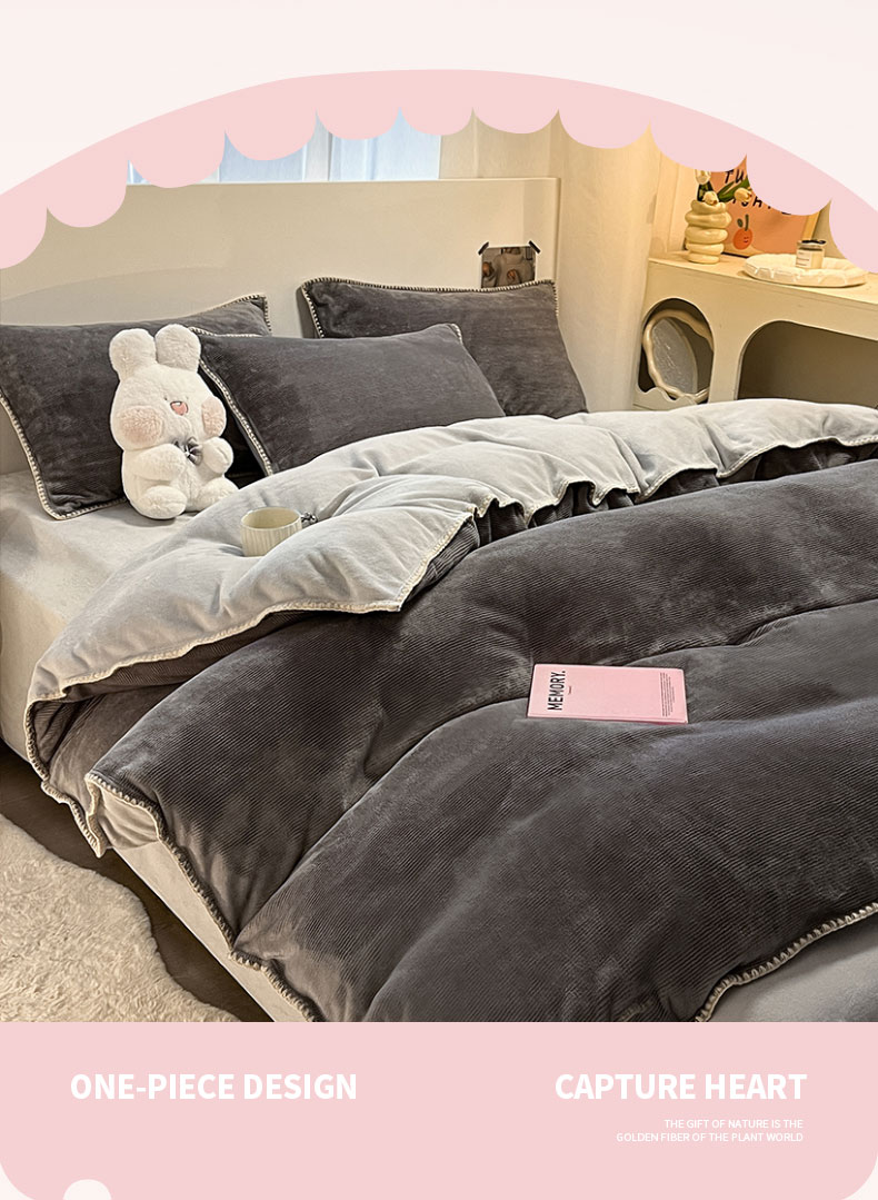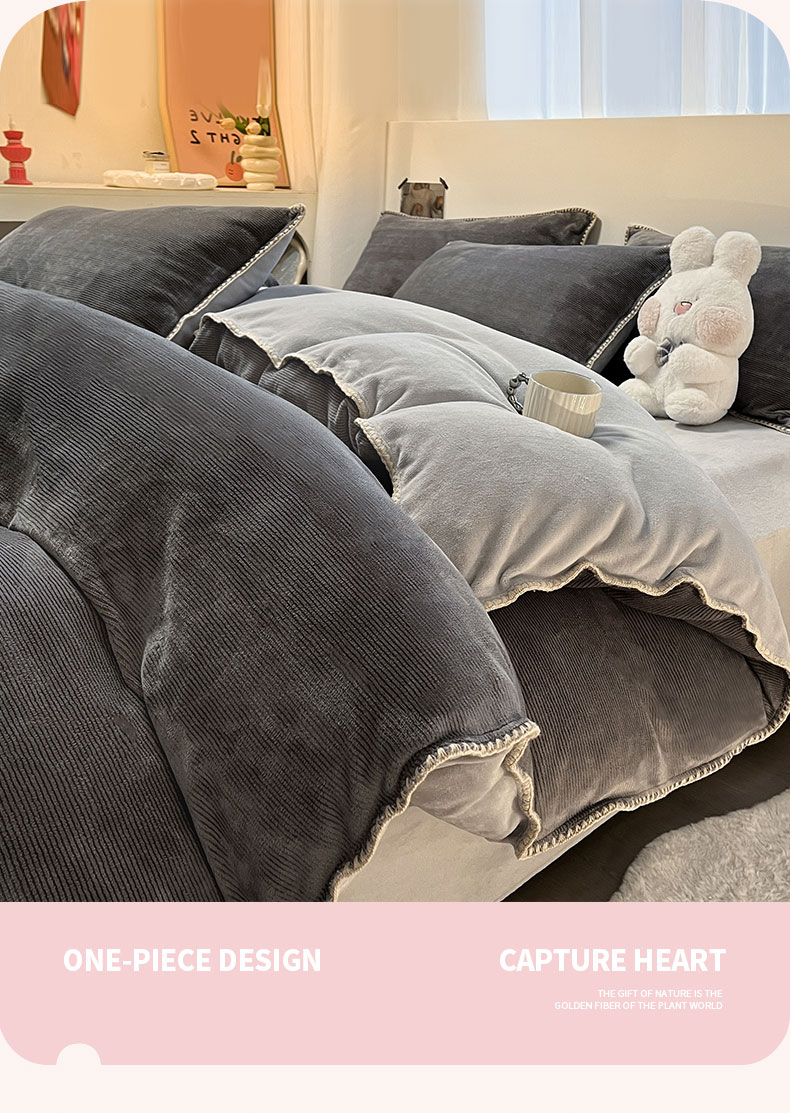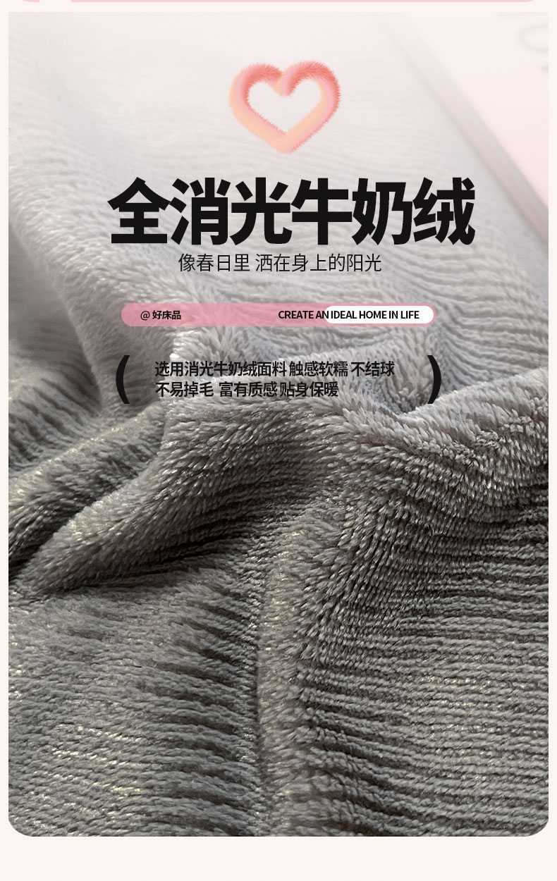 商品名称:ab家纺 2025新款贝壳边消光牛奶绒四件套 灰色