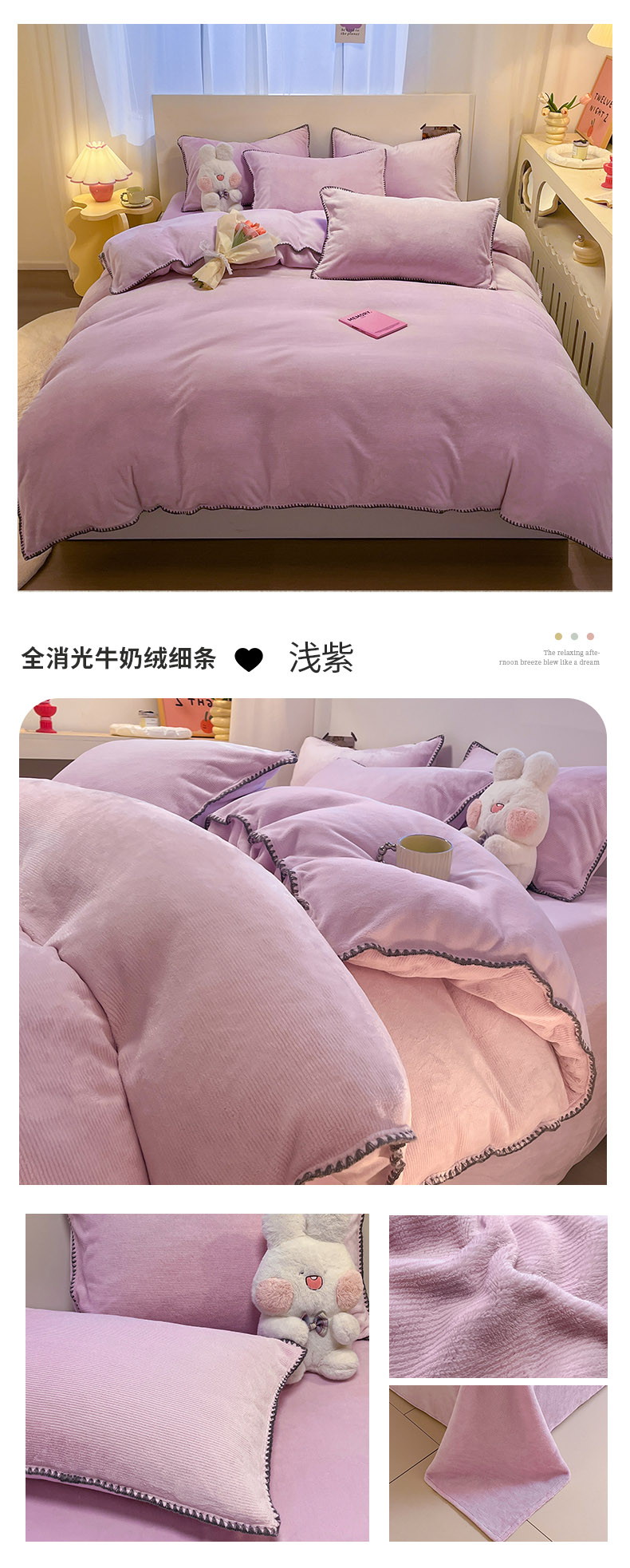(总)ab家纺 2025新款高克重牛奶绒四件套-初恋,初恋柯蓝灰,初恋梦幻粉,初恋梦幻蓝,初恋米月白,初恋嫩绿,初恋藕粉,初恋香芋紫,初恋杏黄