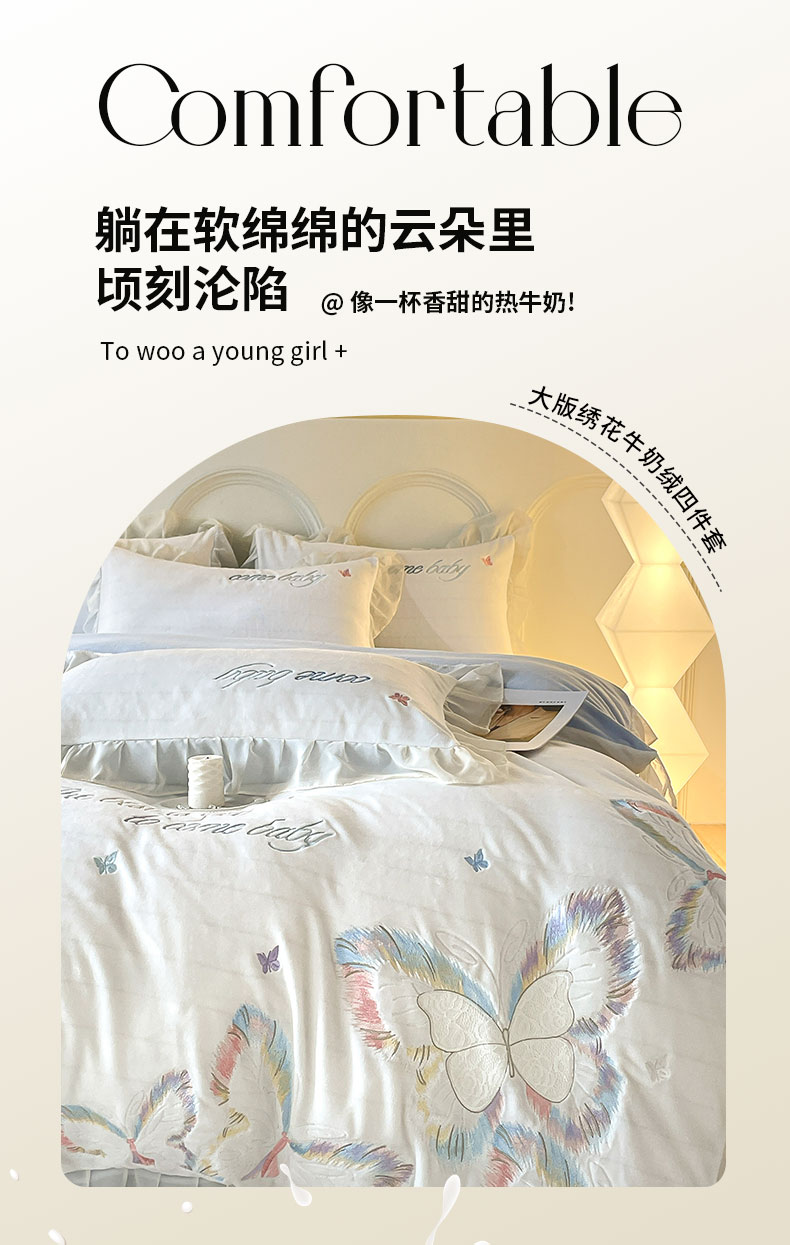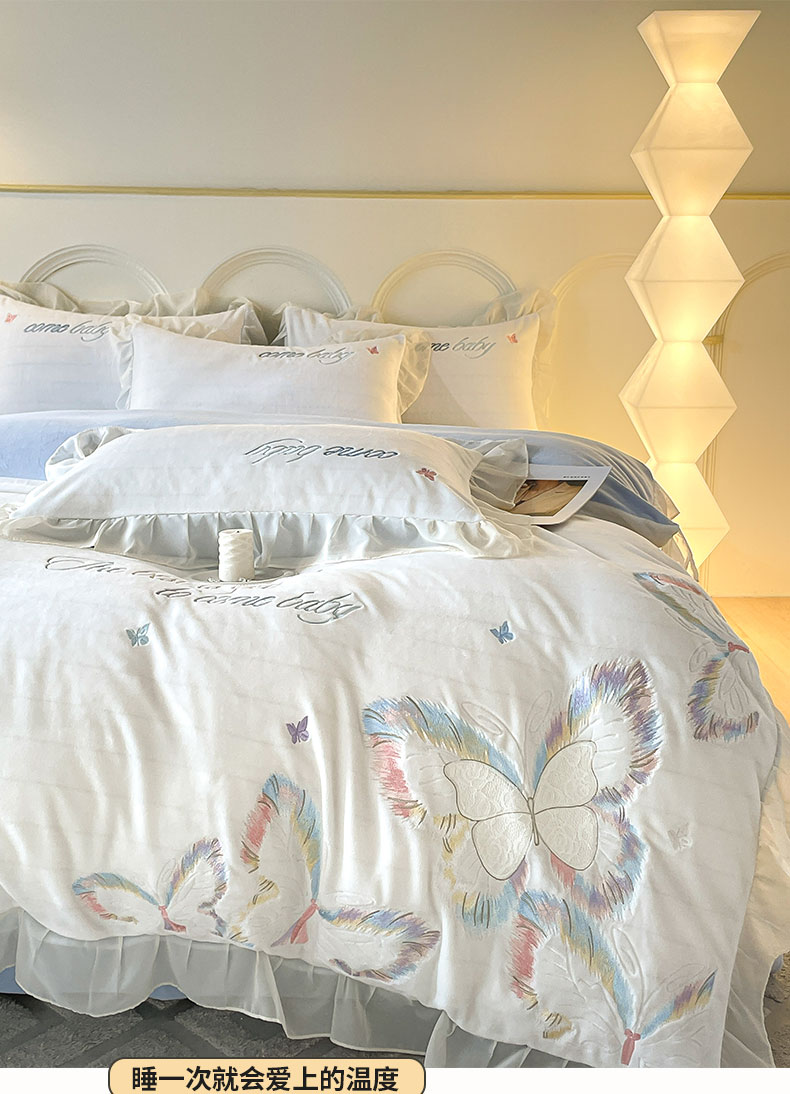 当前位置: 91家纺网 > 商品网购 > 床品套件 > 四件套 > 牛奶绒四件套 > ab家纺 2025新款厚实保暖牛奶绒四件套-碟鸢 碟鸢 -蓝白