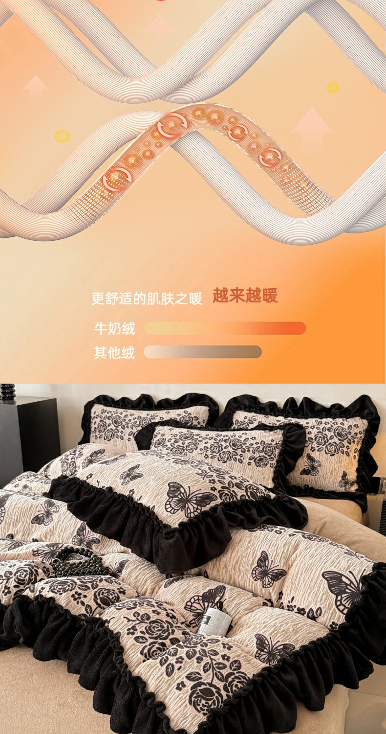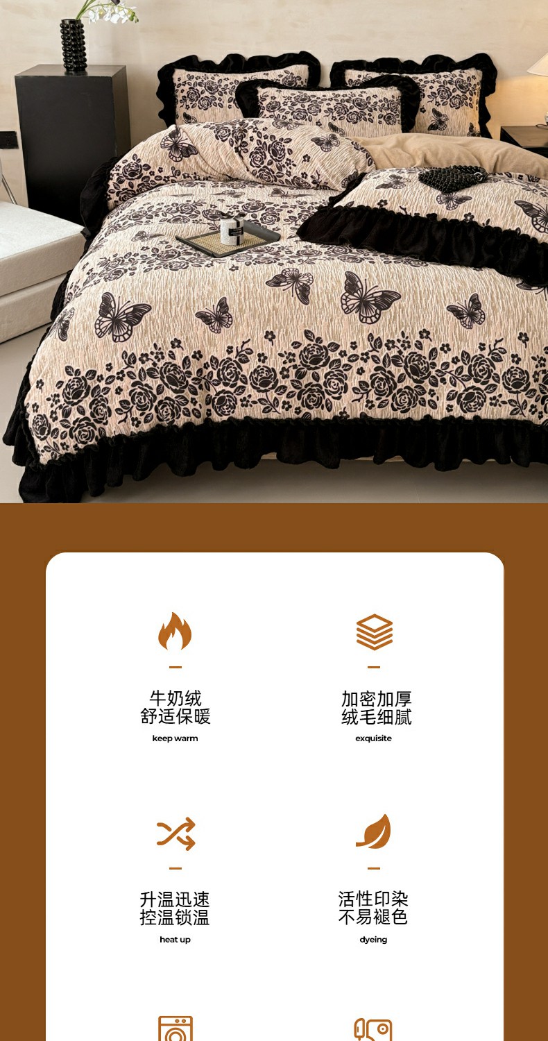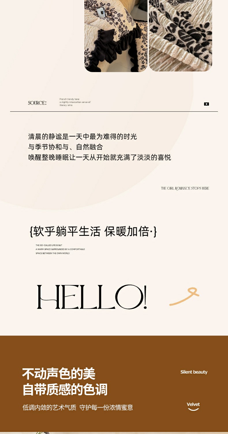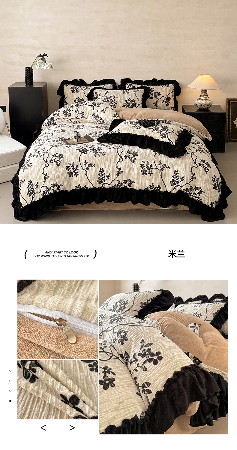 当前位置: 91家纺网 > 商品网购 > 床品套件 > 四件套 > 牛奶绒四件套 > 米莱家纺 2025新款牛奶绒烂花法式花边四件套 曼塔
