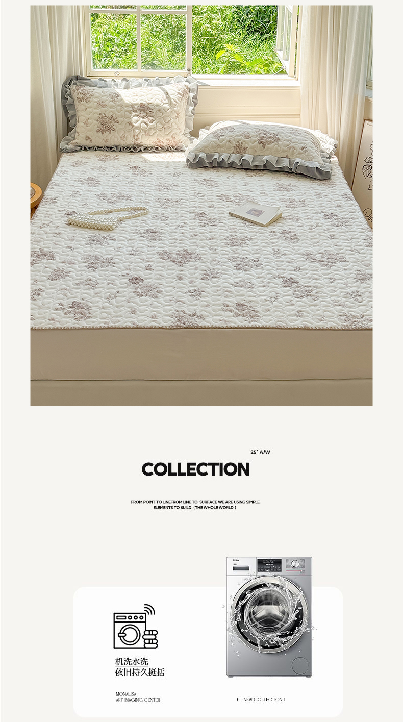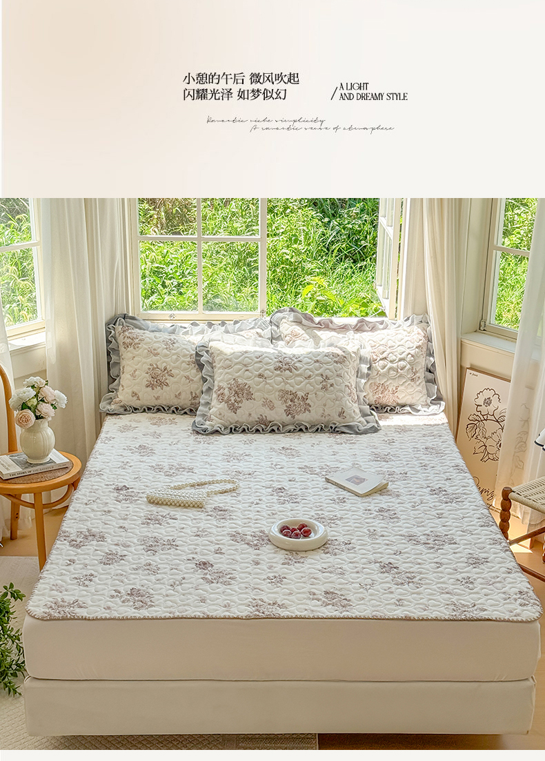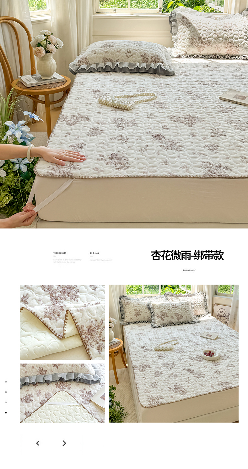 禧缘家纺(原梦想家) 2025新款牛奶绒三角针绑带款夹棉床笠床单 杏花微雨-绑带款