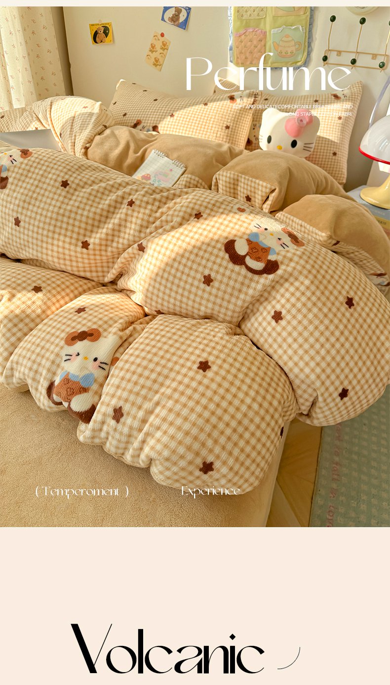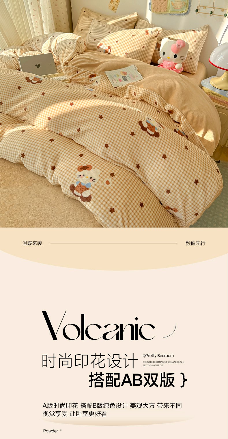 商品名称:韩巢家纺 2025新款双面高克重牛奶绒被套单件被罩 可可猫星