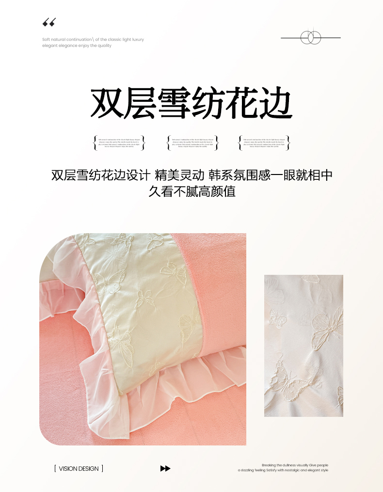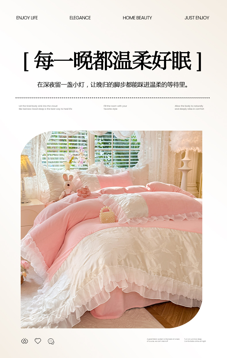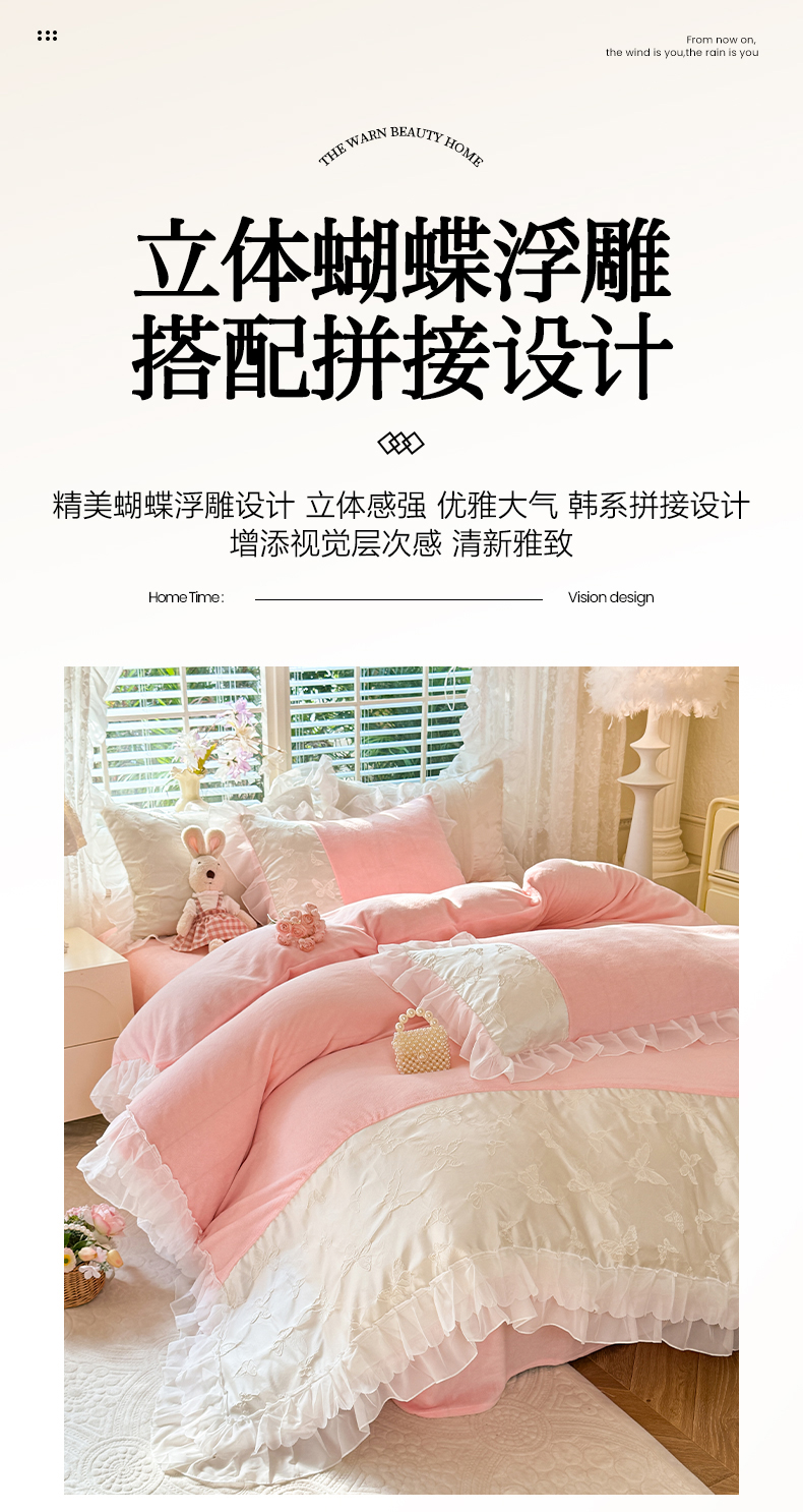 (总)艾米家居 2025秋冬新款牛奶绒泡泡印花花边四件套,豆沙条纹粉,蝴蝶花,太阳花