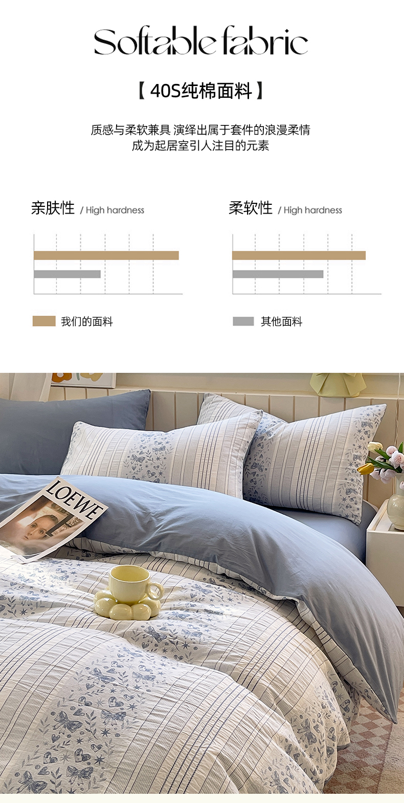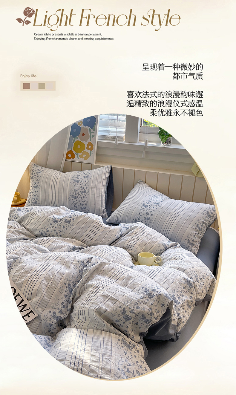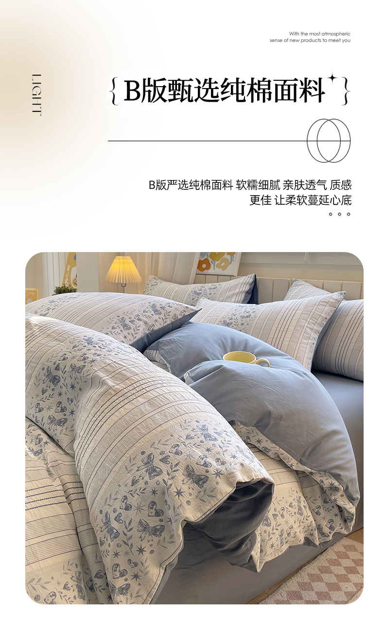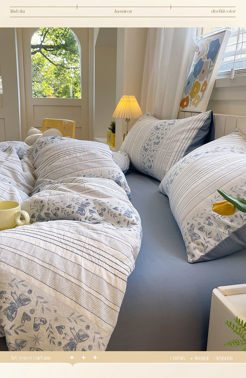 当前位置: 91家纺网 > 商品网购 > 床品套件 > 四件套 > 全棉普通四件套 > 琪格格纺织 2025新款全棉纯棉色织提花小清新四件套 梦蝶-兰