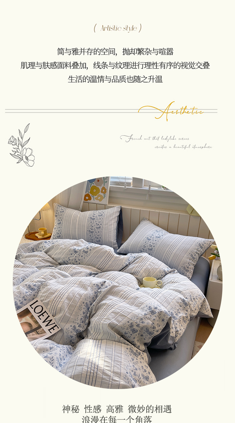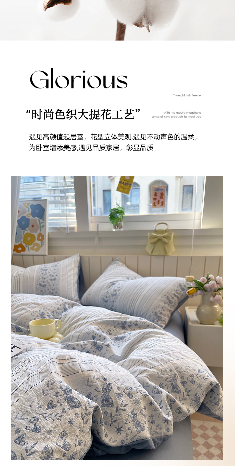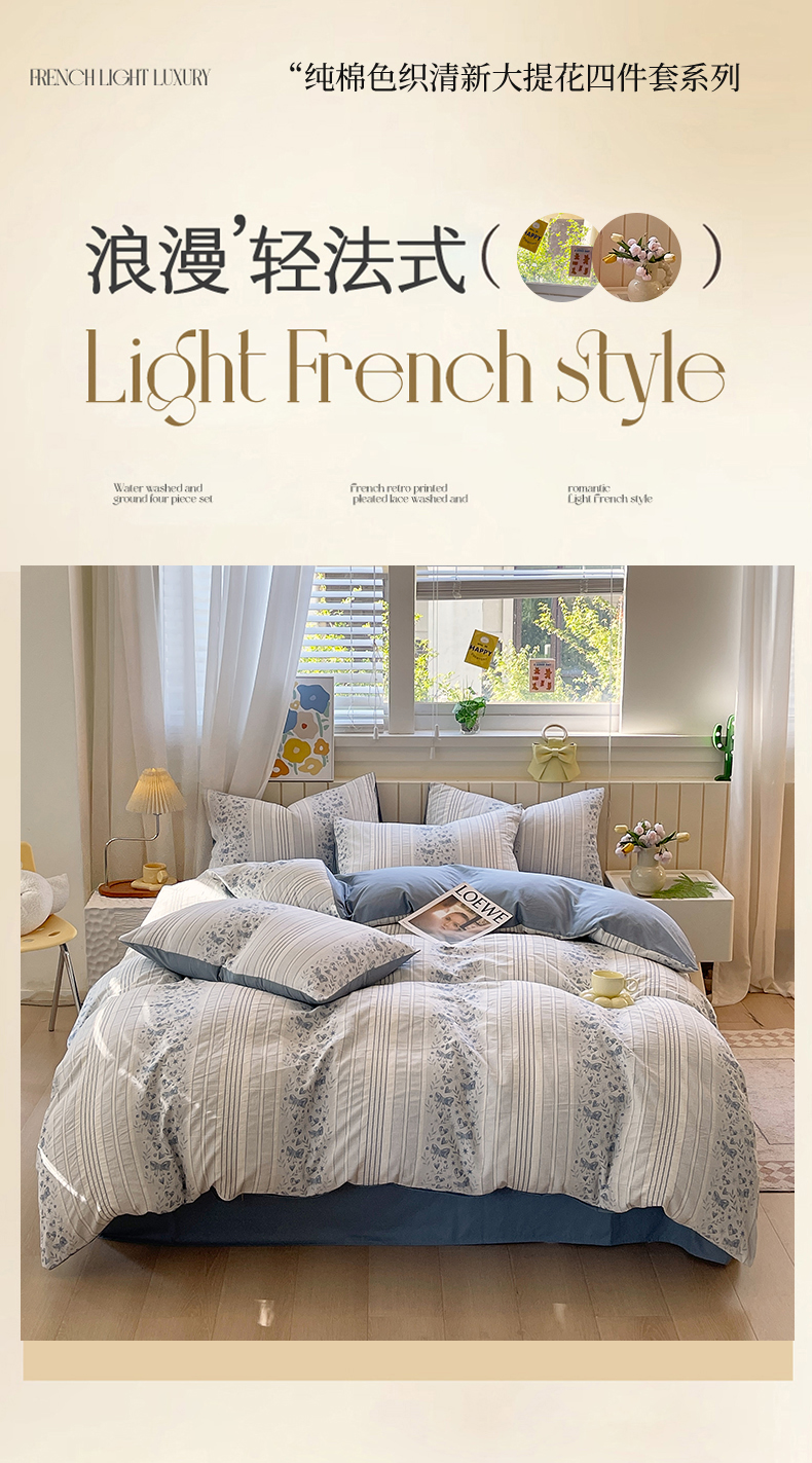 当前位置: 91家纺网 > 商品网购 > 床品套件 > 四件套 > 全棉普通四件套 > 琪格格纺织 2025新款全棉纯棉色织提花小清新四件套 梦蝶-兰