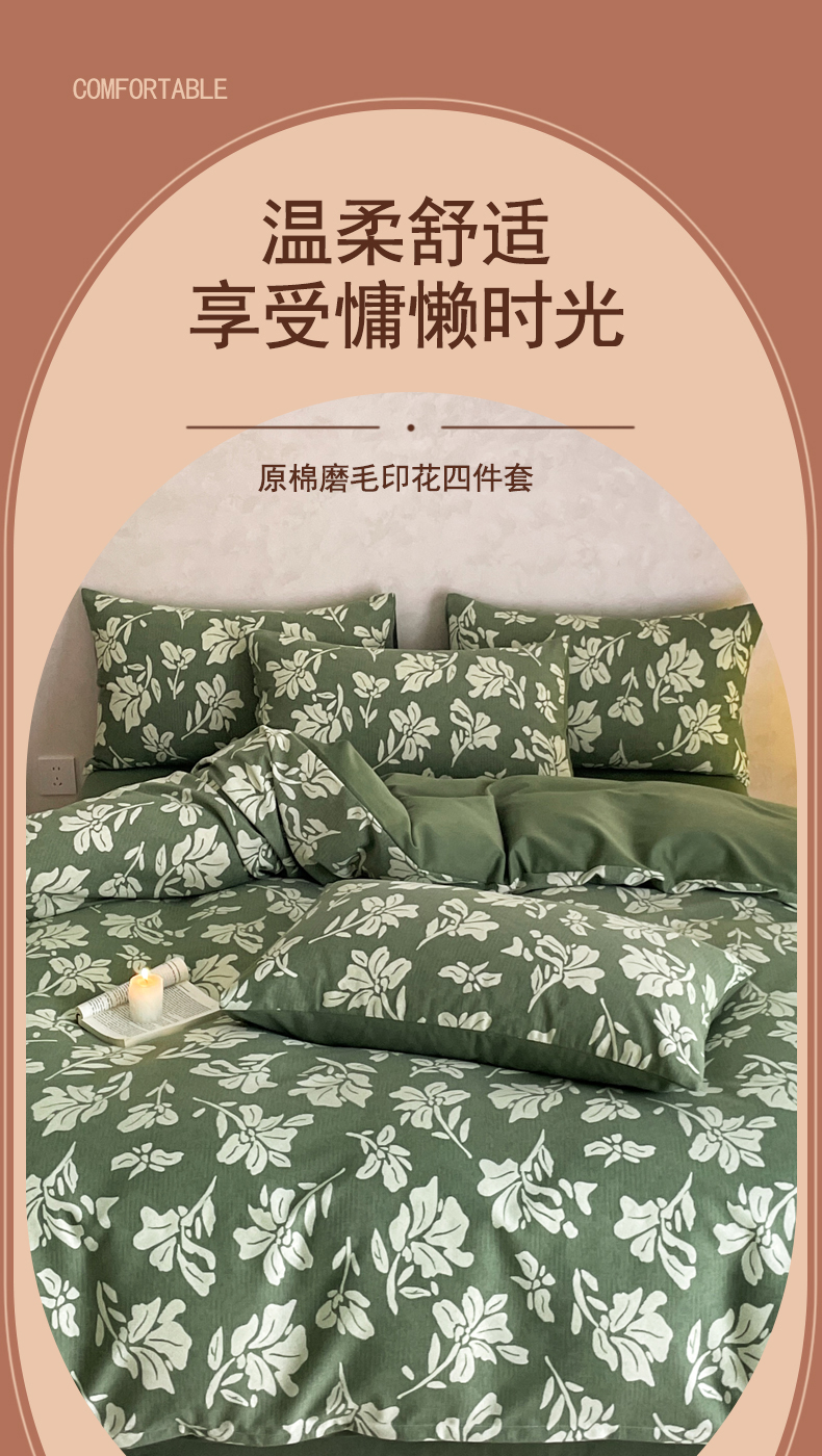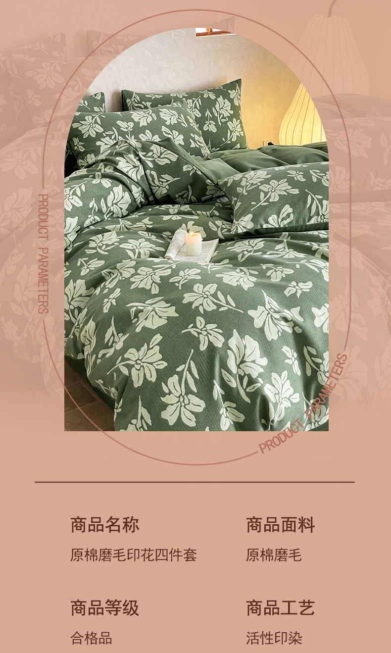 当前位置: 91家纺网 > 商品网购 > 床品套件 > 四件套 > 磨毛活性四件套 > 琪格格纺织 2025新款磨毛印花四件套 慕叶