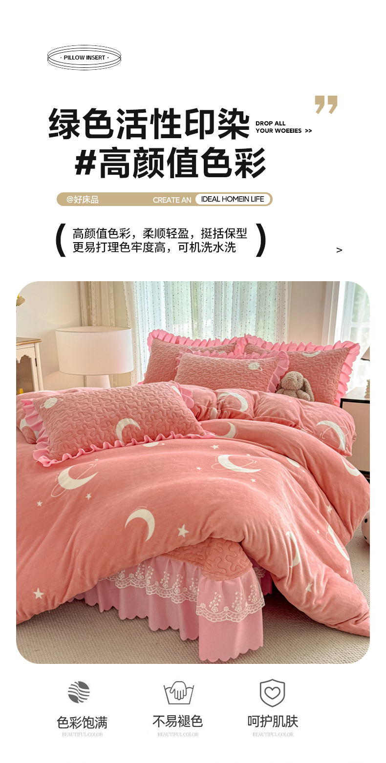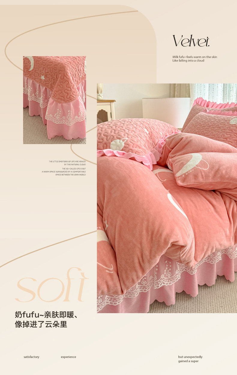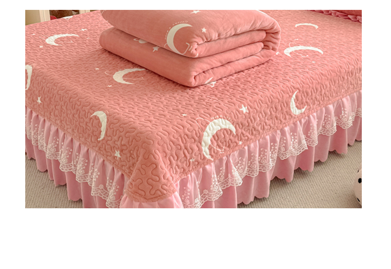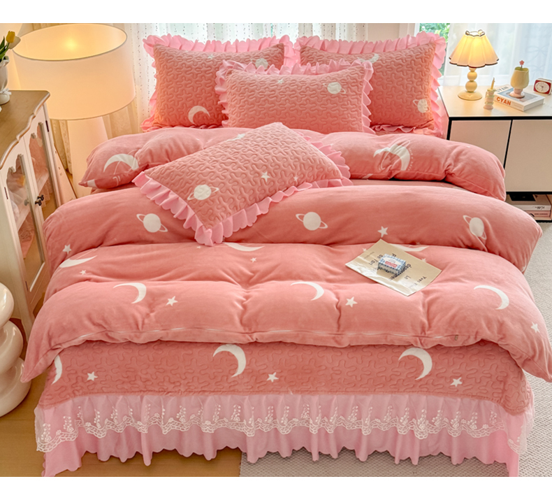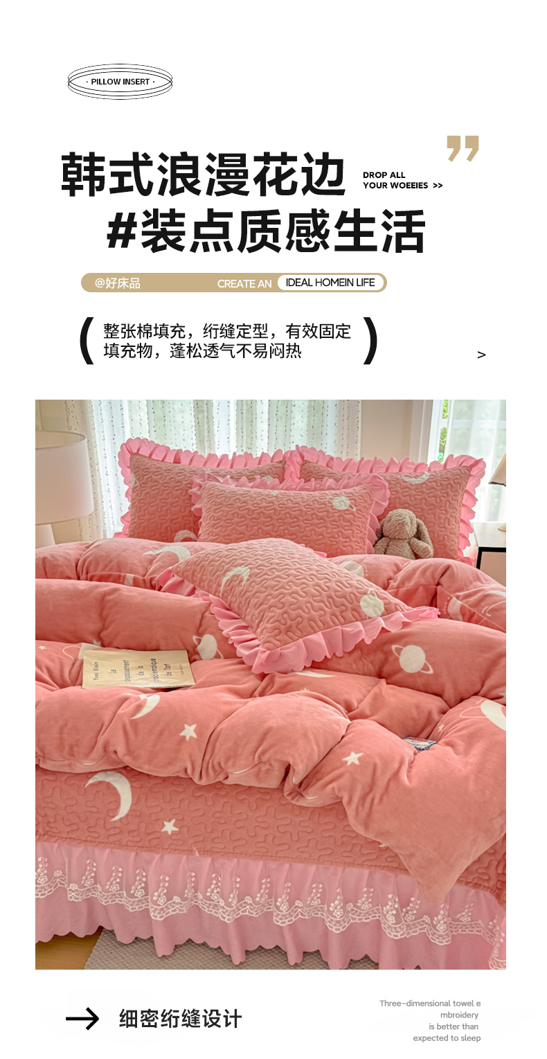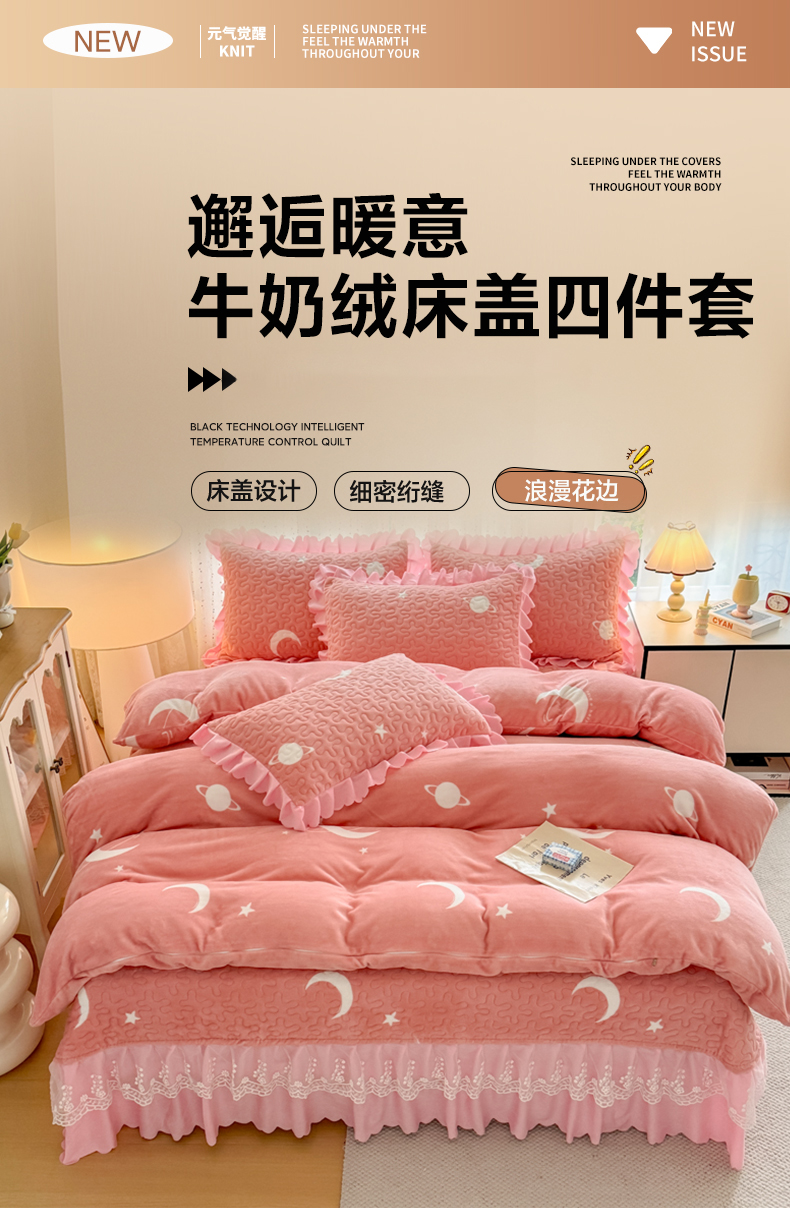 当前位置: 91家纺网 > 商品网购 > 床品套件 > 四件套 > 牛奶绒四件套 > 绒耀 2025新款直播爆款双层蕾丝花边牛奶绒印花床盖四件套床盖单件三件套 晚安星辰