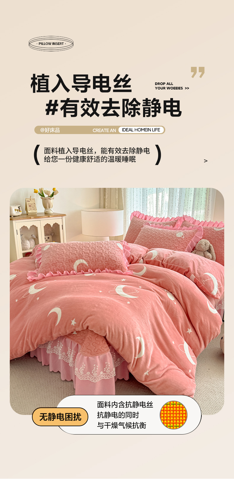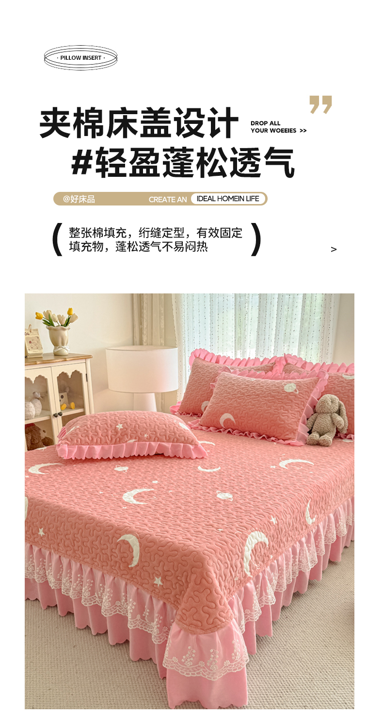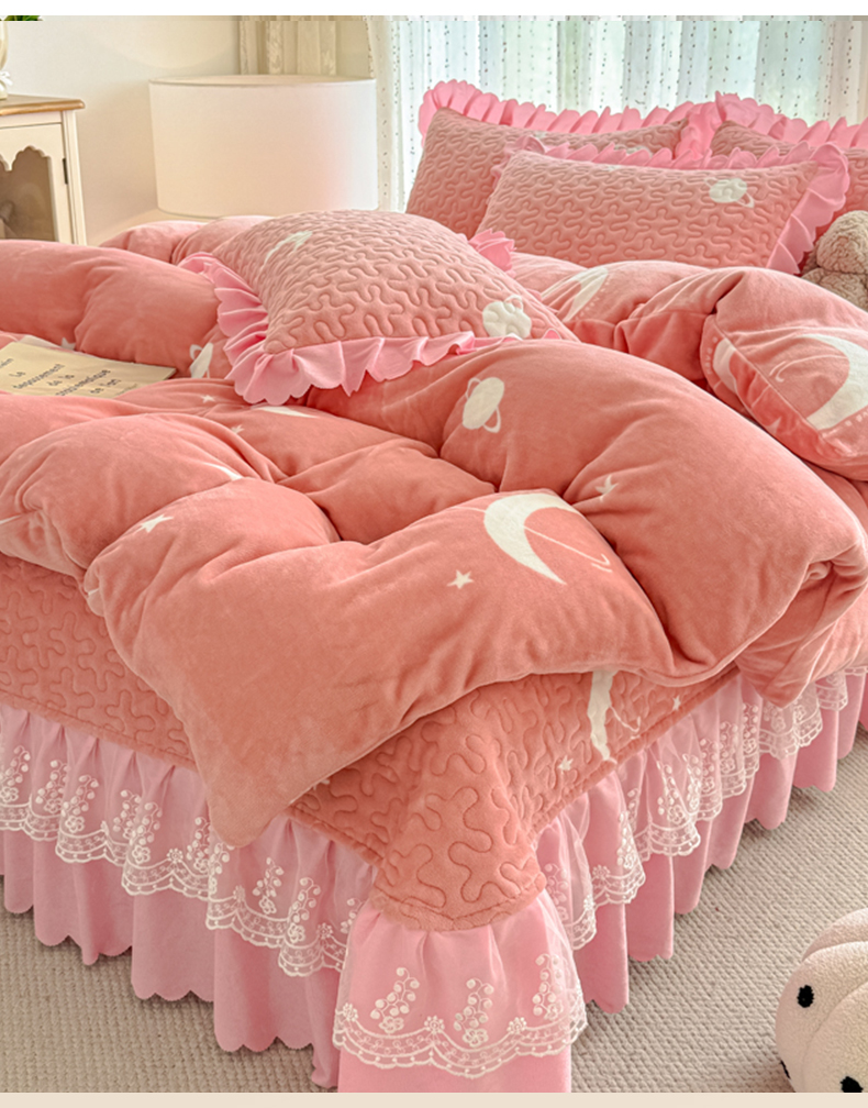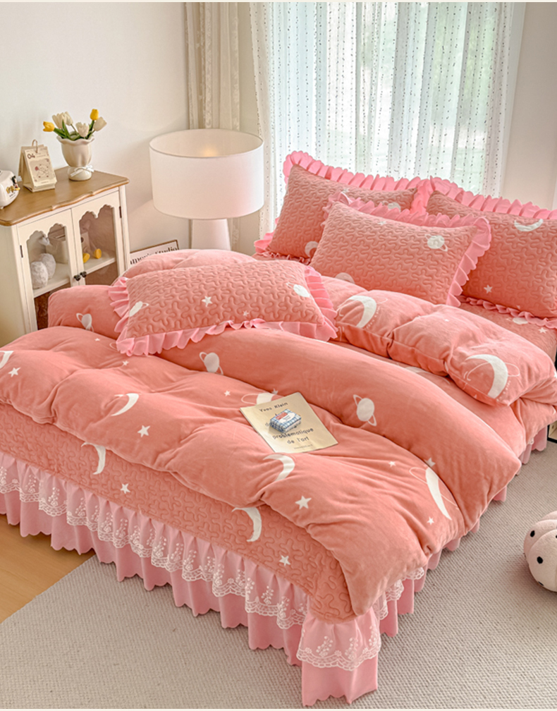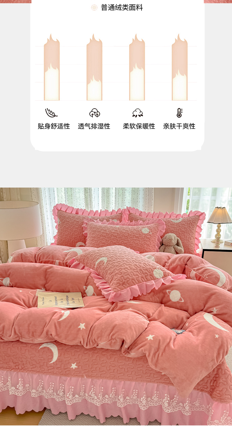 当前位置: 91家纺网 > 商品网购 > 床品套件 > 四件套 > 牛奶绒四件套 > 绒耀 2025新款直播爆款双层蕾丝花边牛奶绒印花床盖四件套床盖单件三件套 晚安星辰