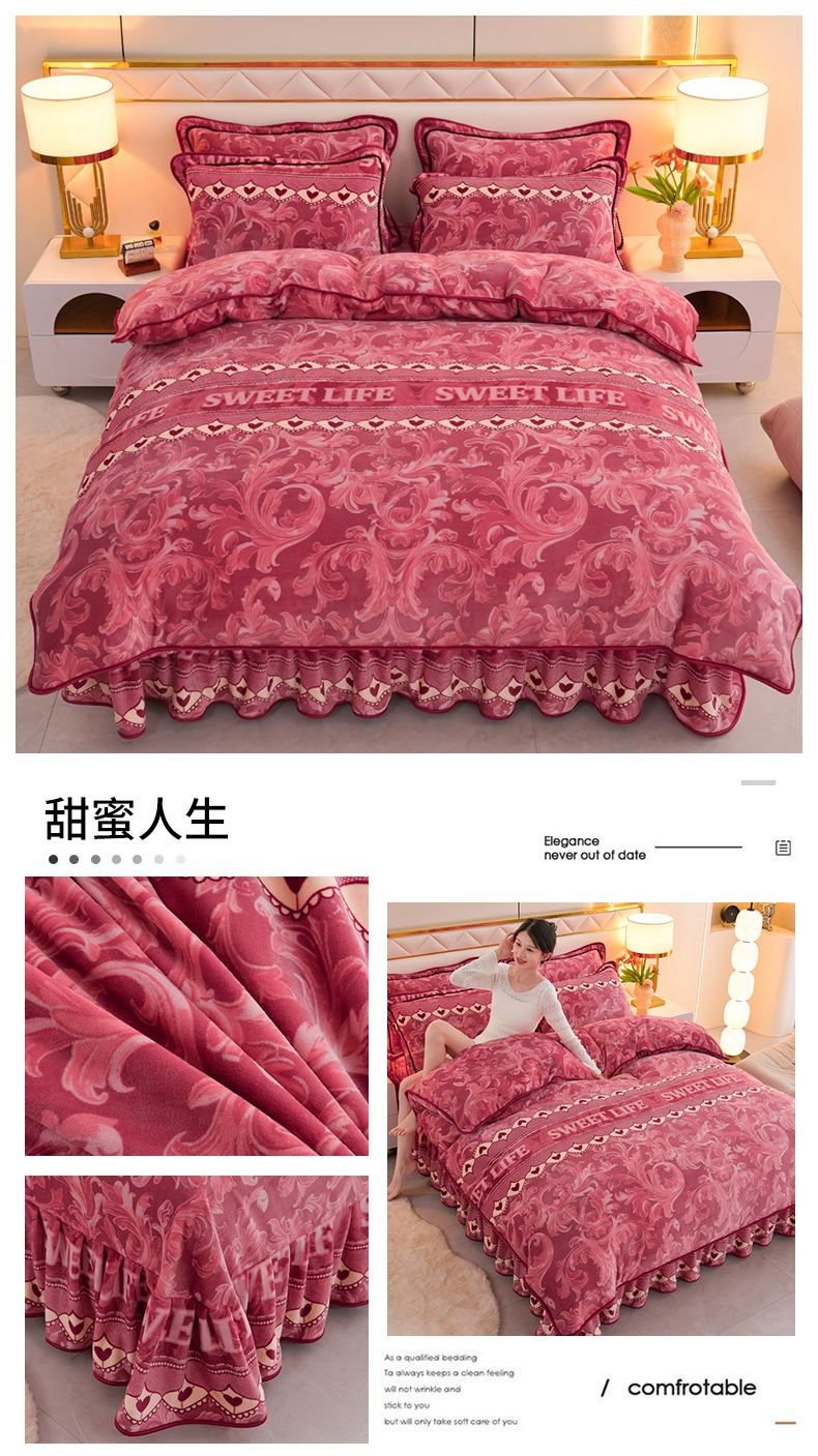 商品名称:眠多宝 2025新款8-9斤高克重牛奶绒四件套法莱绒水晶绒金貂绒抖音快手直播热款 富贵袭人