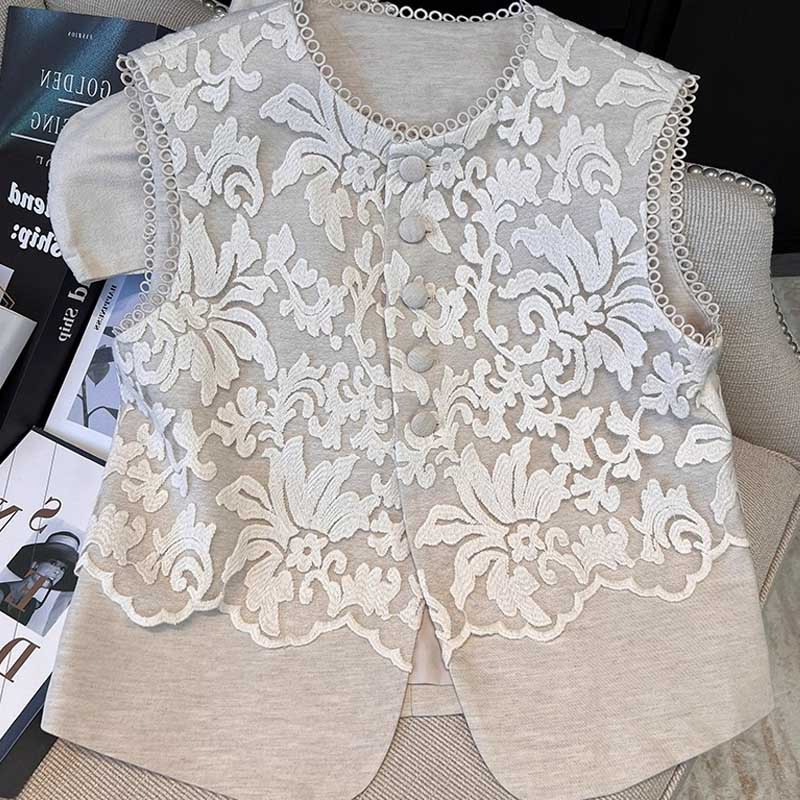洛兰沙家居馆【只代发】【只代发】 2025新款复古织锦缎细纱棉麻拼接马甲背心刺绣中式盘扣上衣 35