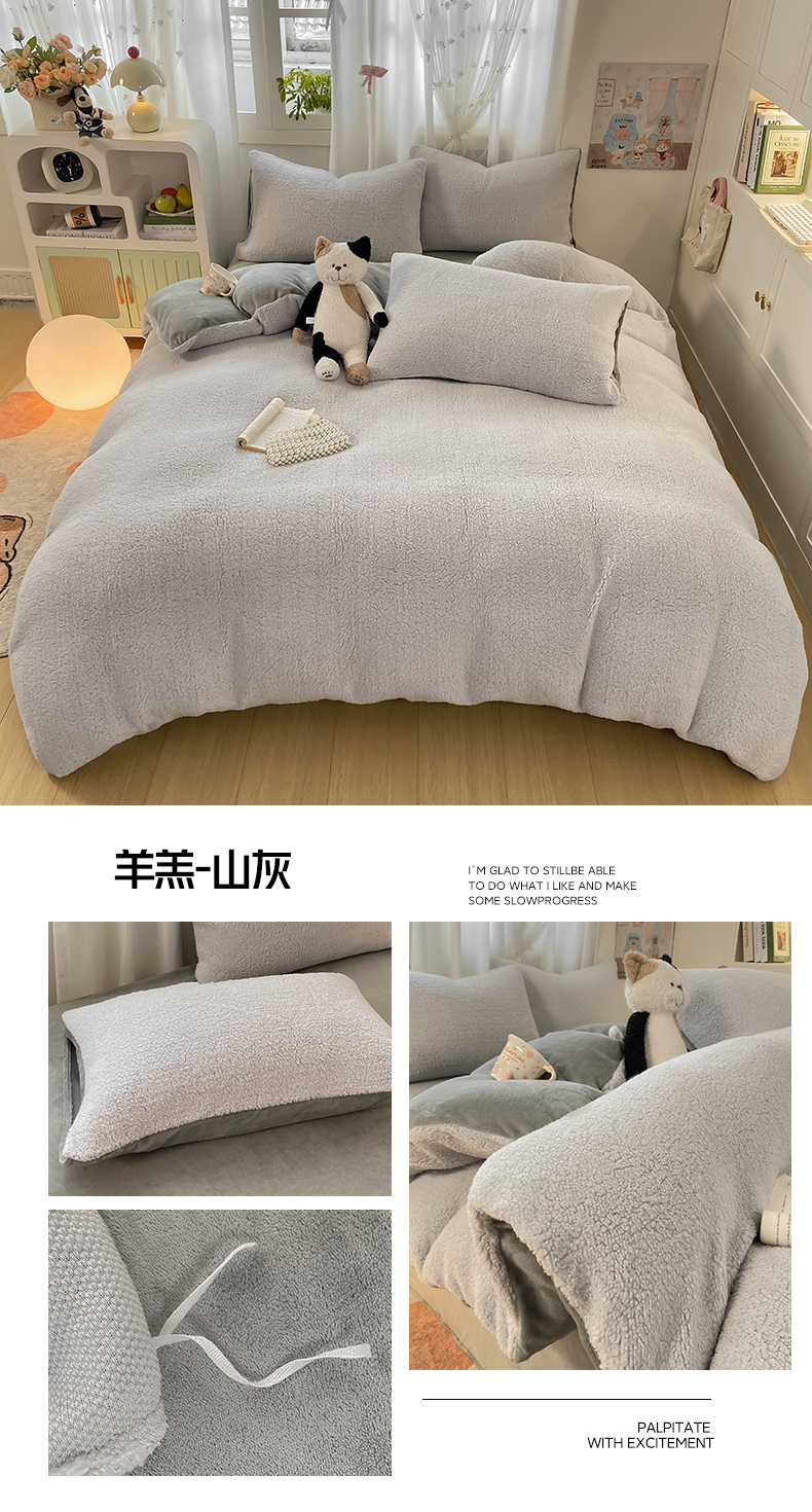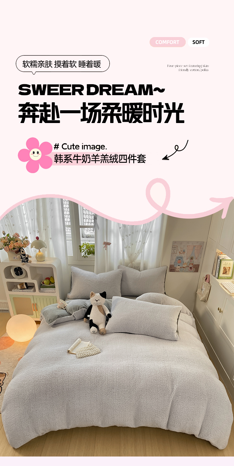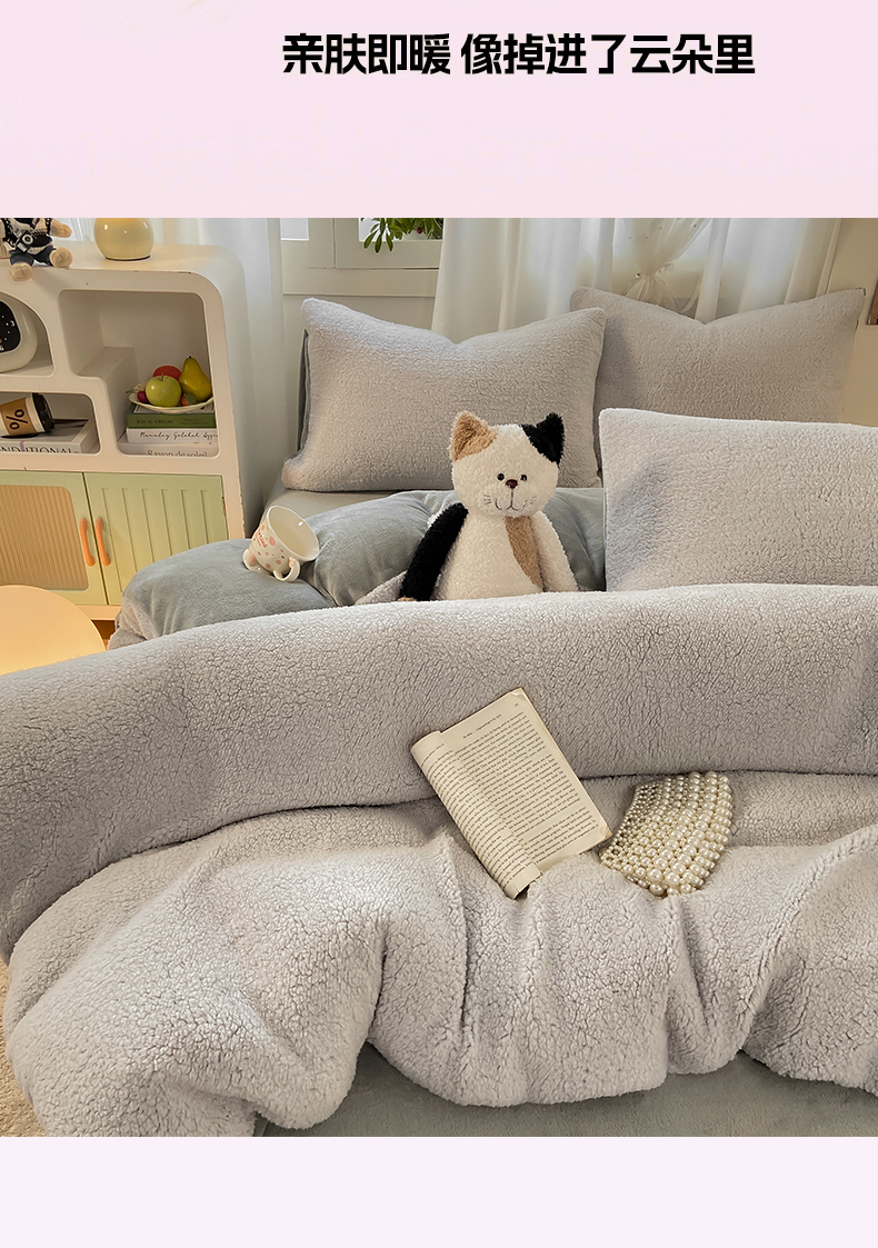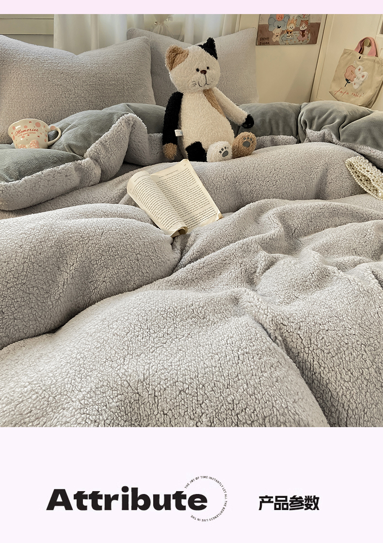 当前位置: 91家纺网 > 商品网购 > 床品套件 > 四件套 > 羊羔绒四件套 > 灰鲸 2025新款秋冬韩系牛奶羊羔绒四件套 羊羔-山灰