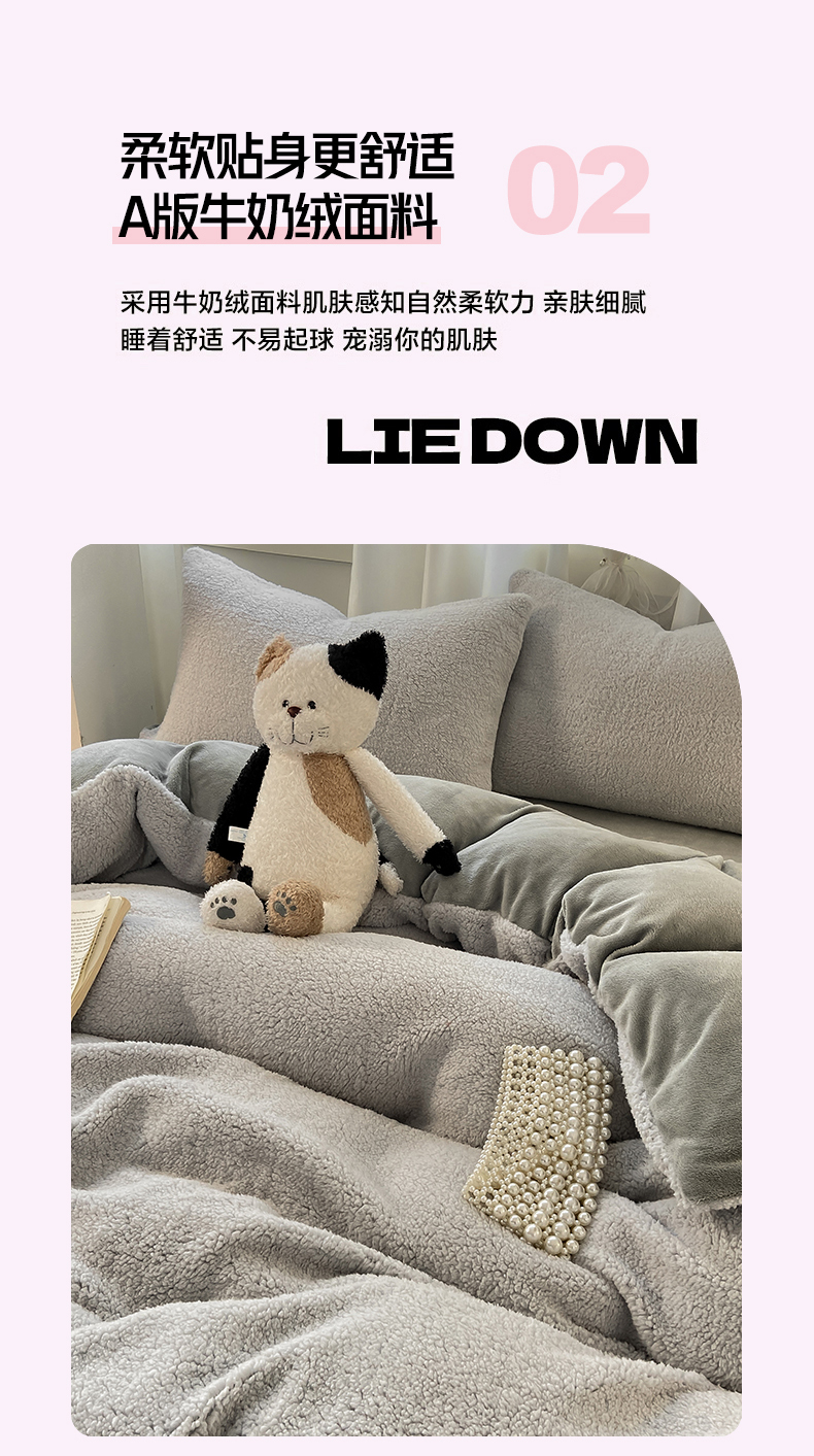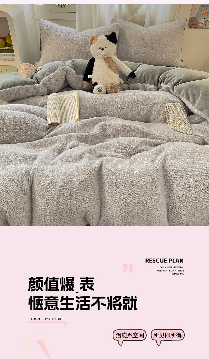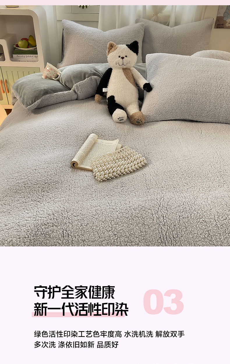 当前位置: 91家纺网 > 商品网购 > 床品套件 > 四件套 > 羊羔绒四件套 > 灰鲸 2025新款秋冬韩系牛奶羊羔绒四件套 羊羔-山灰