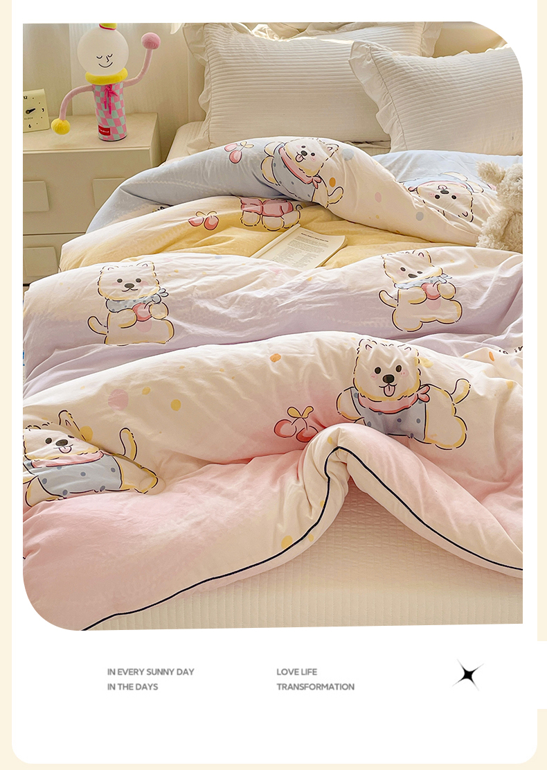 (总)寐居家纺 2025新款贴布绣高克重牛奶绒四件套,安吉拉喵,查理狗,粉糯kitty,皮皮布布