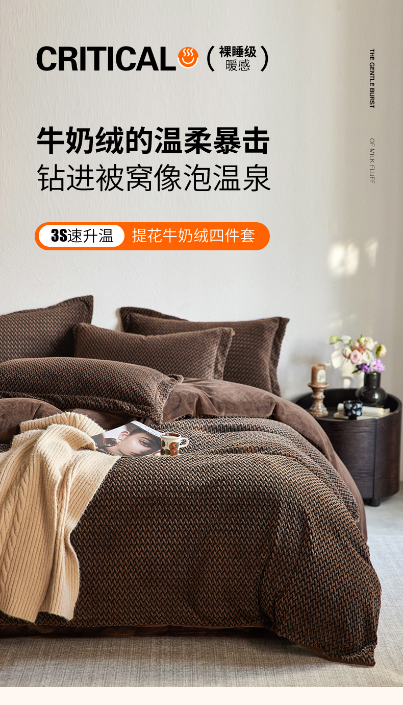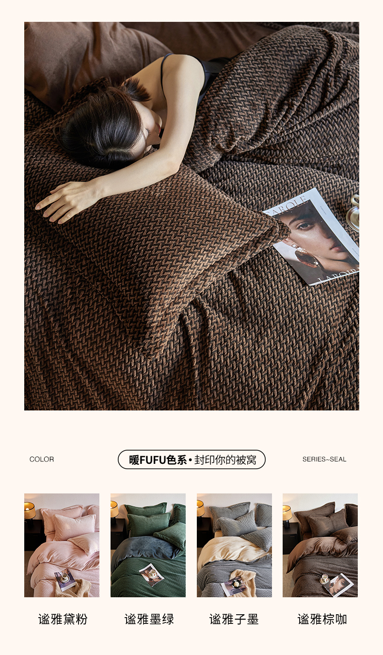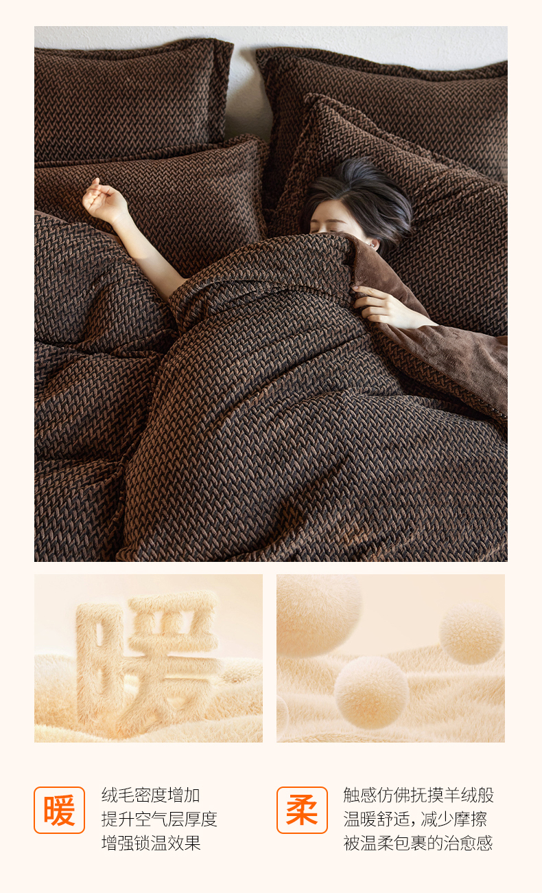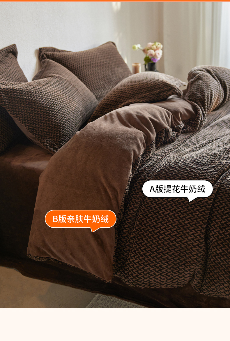 当前位置: 91家纺网 > 商品网购 > 床品套件 > 四件套 > 牛奶绒四件套 > 安莱生活 2025新款加厚250克全消光提花印花牛奶绒四件套-谧雅系列 谧雅棕咖