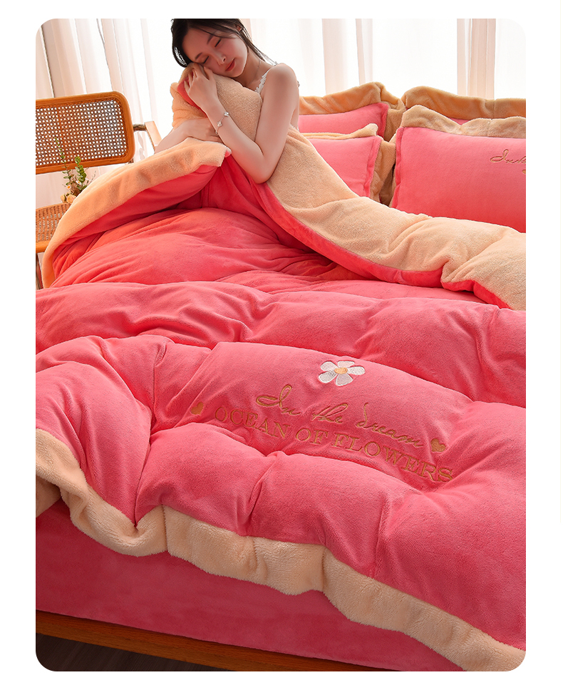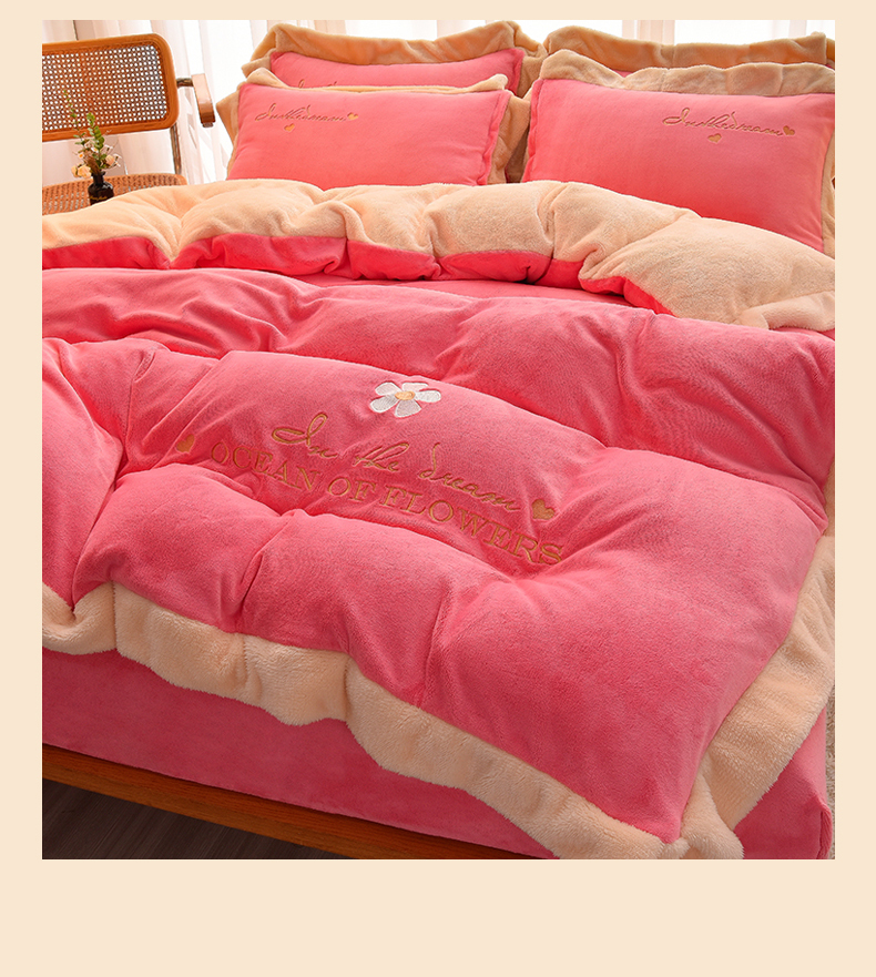 笙意 新款牛奶绒刺绣四件套-繁花系列 繁花-玫玫红