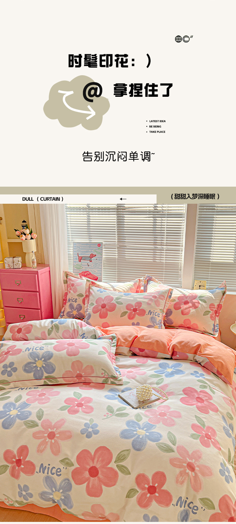 当前位置: 91家纺网 > 商品网购 > 床品套件 > 四件套 > 全棉普通四件套 > 优选直播新款全棉磨毛喷气印花四件套加厚纯棉三件套(一字绣工艺款)学生三件套 爱意花间