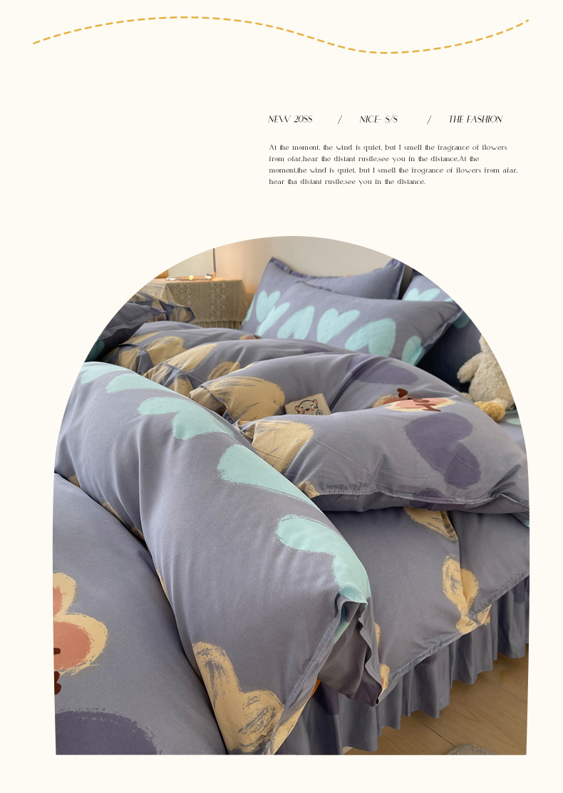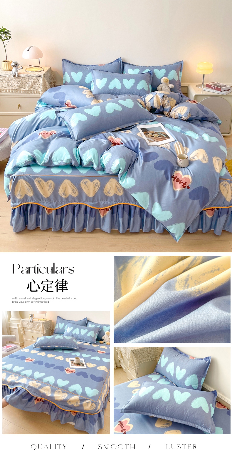 (总)笠裙家纺 2025新款A类水洗棉韩版S边花边印花床裙四件套,爱心蝴蝶结,婉华,比翼,潮格,宠爱,纯爱,蝶恋,多彩生活,花爱,花舞,花样,简爱,可爱,麦香,漫步云端,美好,浅花,情意正浓,生活,小清新,小兔,小熊,心定律,心律,心尚,心意