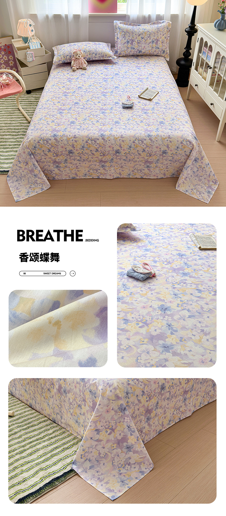 • 91家纺网 家纺一手货源 找家纺 拾物记 2025新款A类12868全棉纯棉单床单床单单件-提供买家秀和质检报告 幽兰时光-米