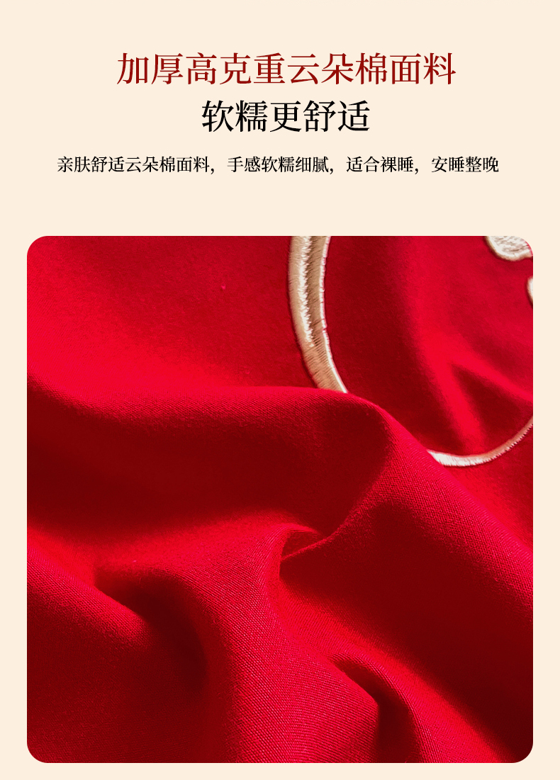 (总)艾橙家纺 2025新款大红云朵棉刺绣婚庆系列四件套,百年好和,比翼双飞,花开并蒂,吾家有喜,喜结良缘,相爱一生,一生挚爱