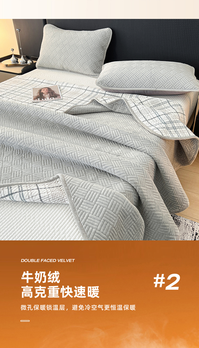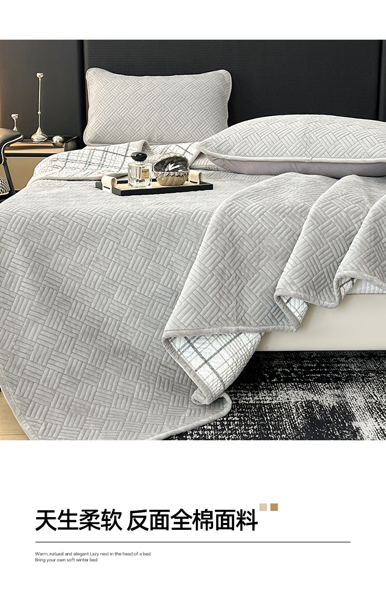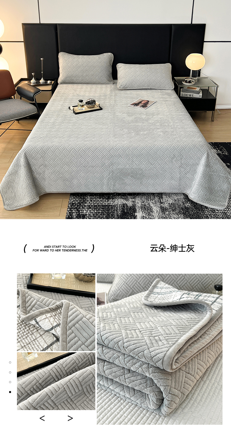 • 91家纺网 家纺一手货源 找家纺 茉夕家纺 2025新款云朵系列棉+牛奶绒单床盖 床盖单件 云朵-绅士灰