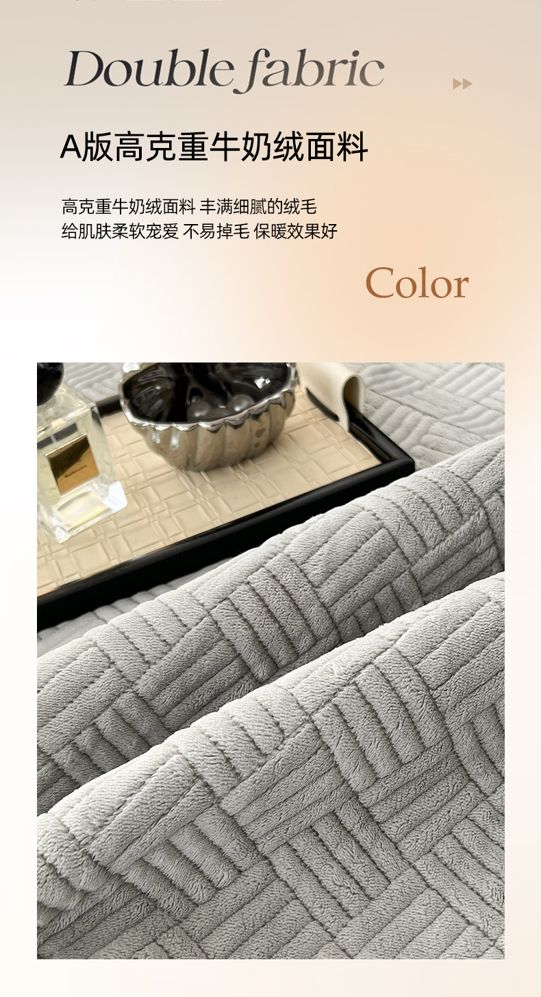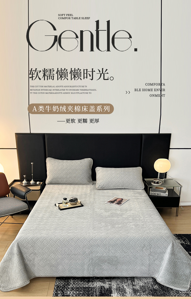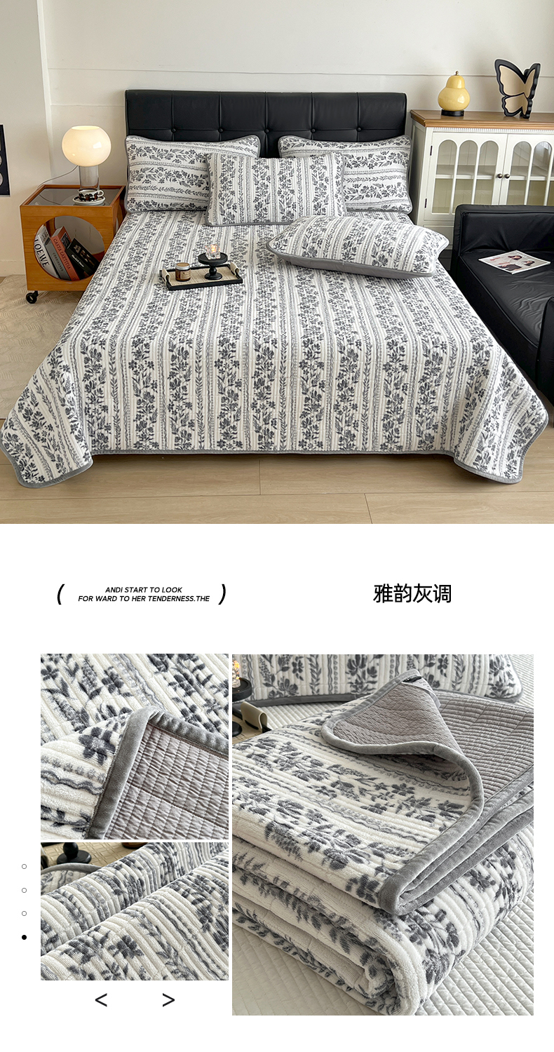• 91家纺网 家纺一手货源 找家纺 茉夕家纺 2025新款云朵系列棉+牛奶绒单床盖 床盖单件 云朵-绅士灰