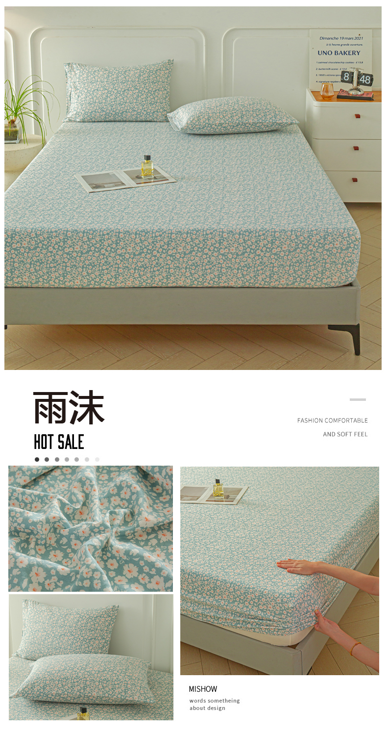 斯卡诺家纺 2025新款秋冬爆款古法水洗棉单床笠床笠三件套枕套 雨沫-床笠