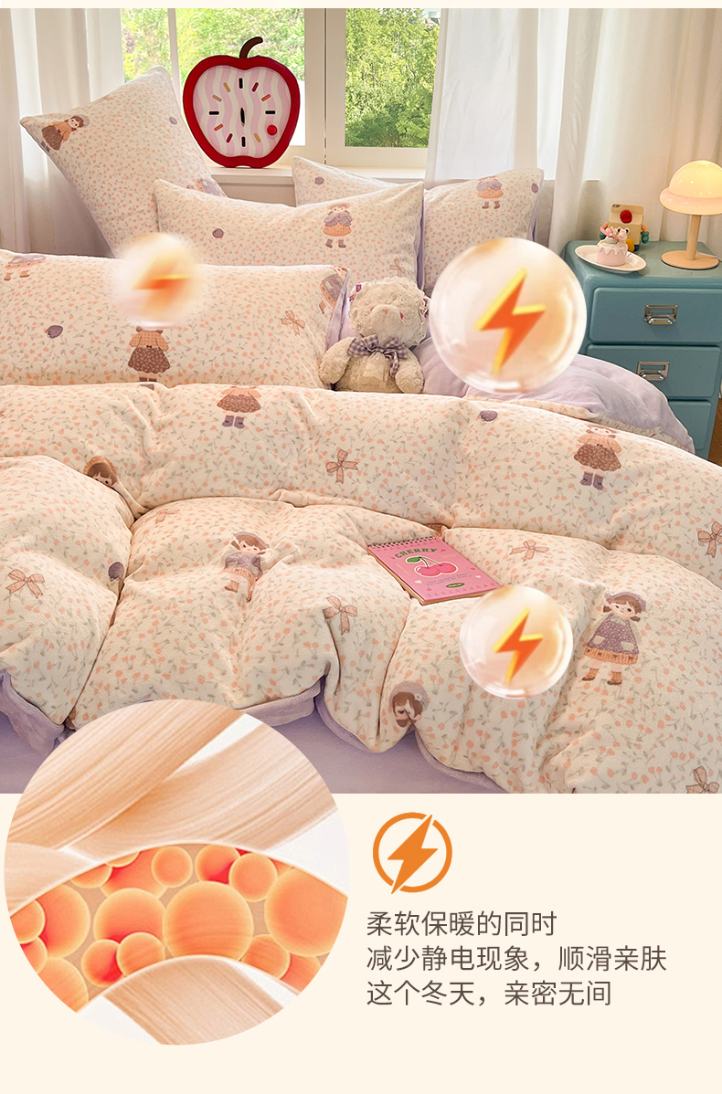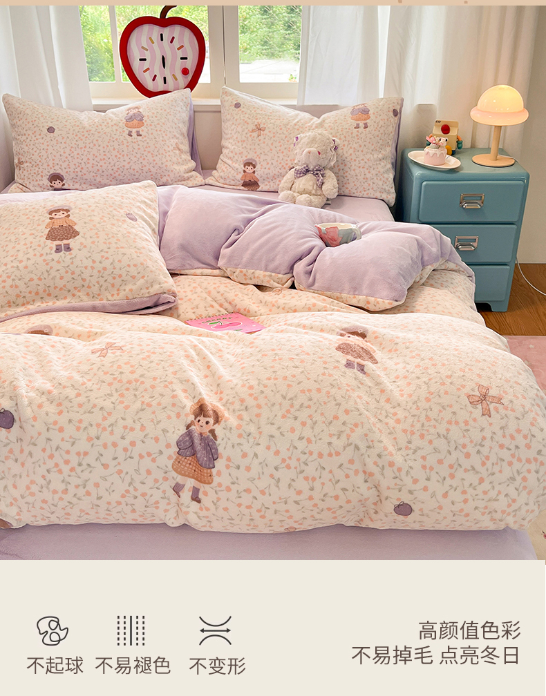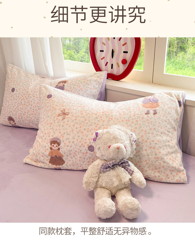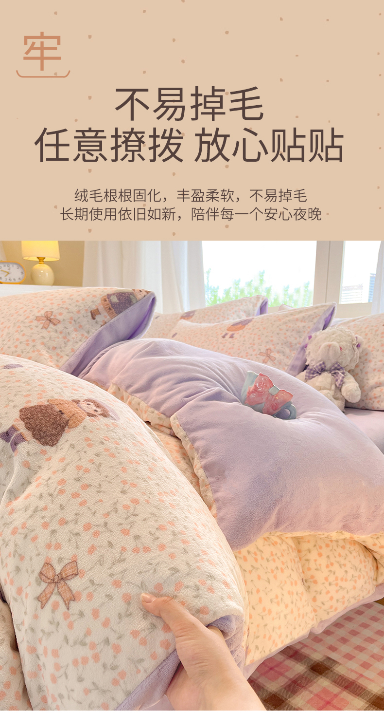 商品名称:云棉坊 2025新款高克重卡通牛奶绒四件套-印花系列 甜美女孩
