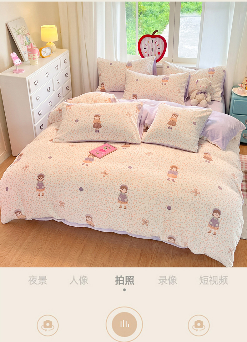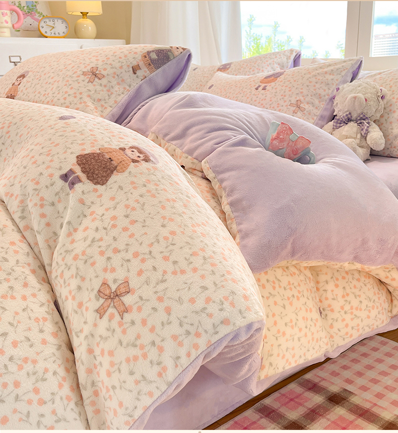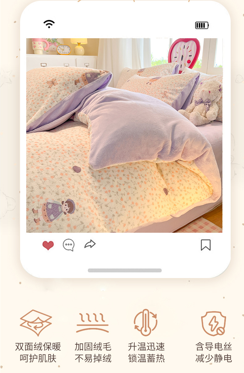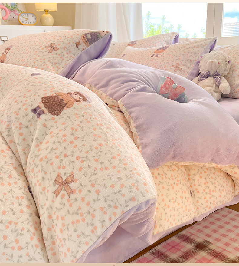 商品名称:云棉坊 2025新款高克重卡通牛奶绒四件套-印花系列 甜美女孩