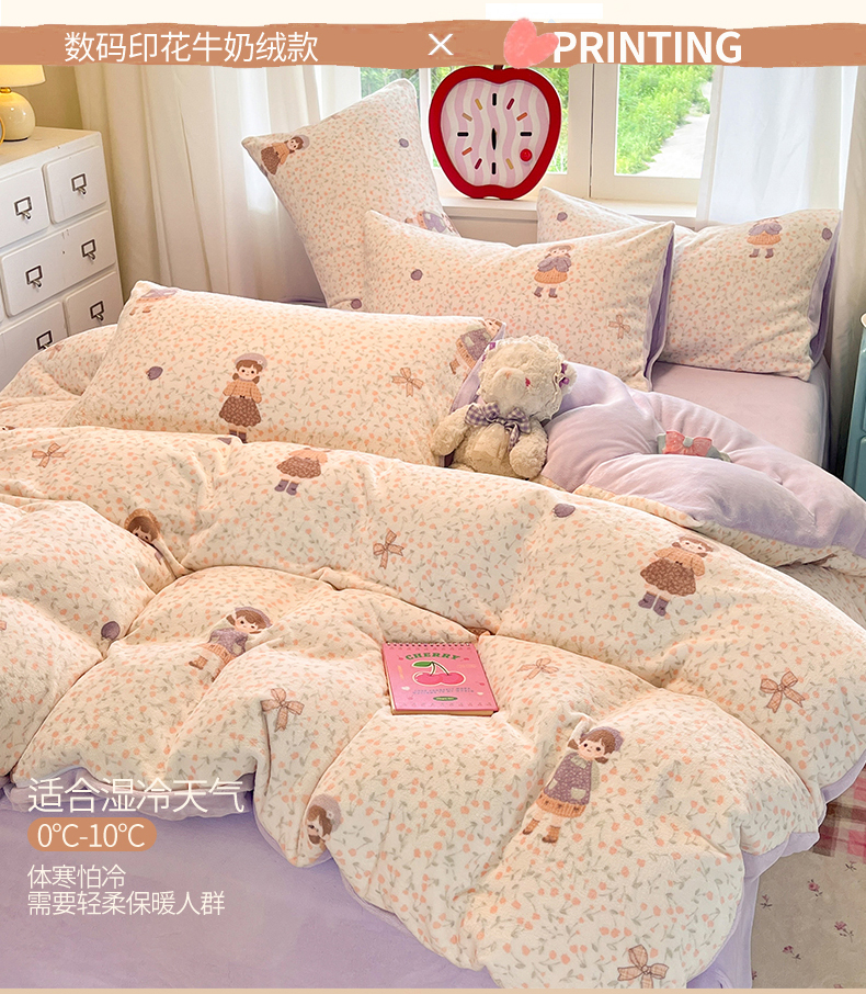 云棉坊 2025新款高克重卡通牛奶绒四件套-印花系列 甜美女孩