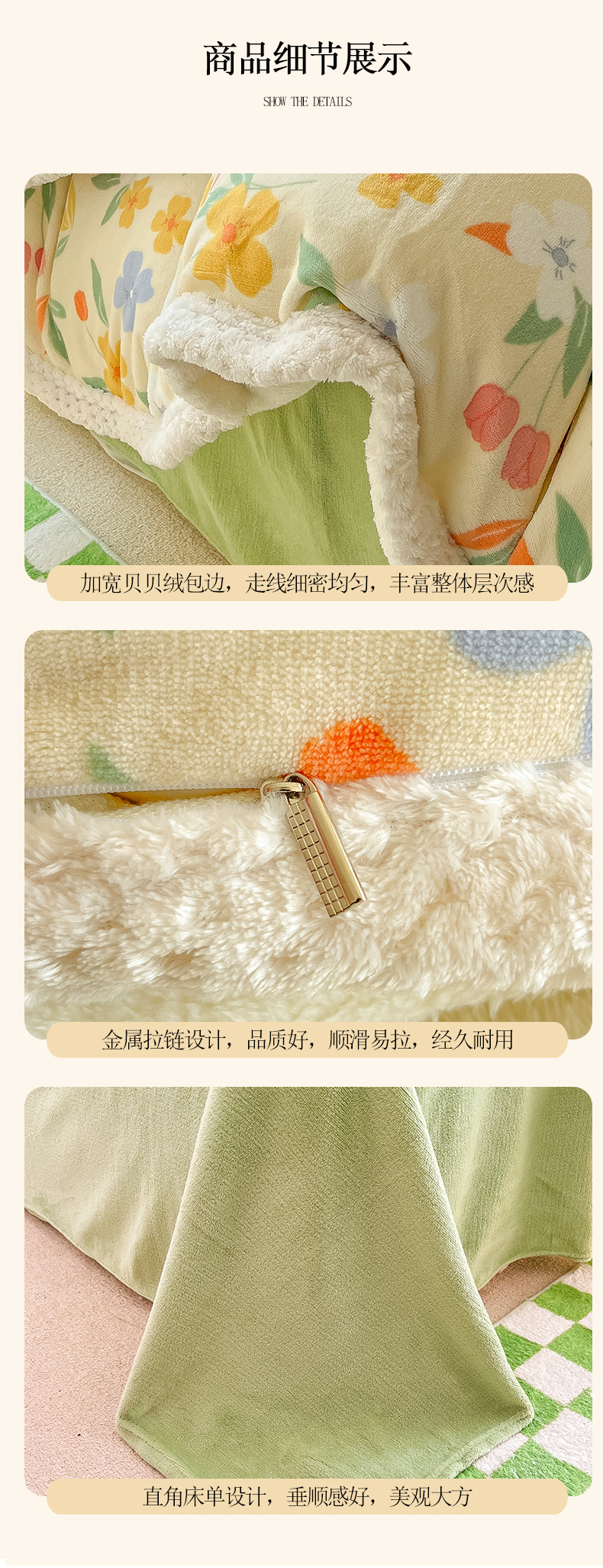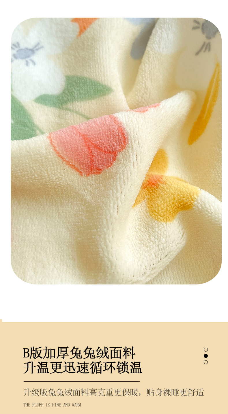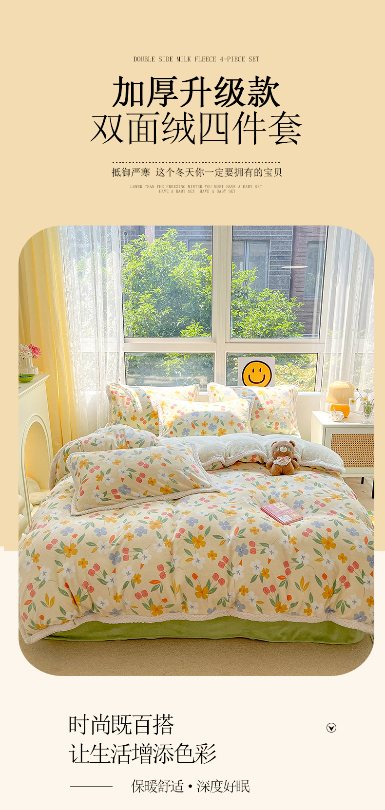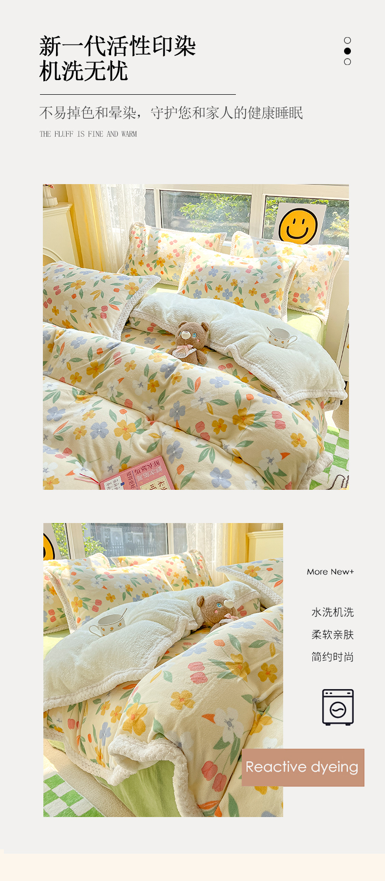 商品名称:琪格格纺织 2025新款A牛奶绒B兔兔绒保暖印花四件套 大包边绒沁香-黄