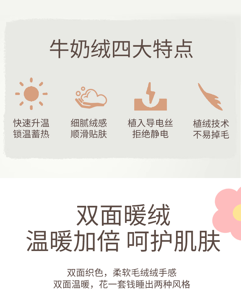 商品名称:云棉坊 2025新款高克重牛奶绒四件套-满绣系列 花朵-奶白粉