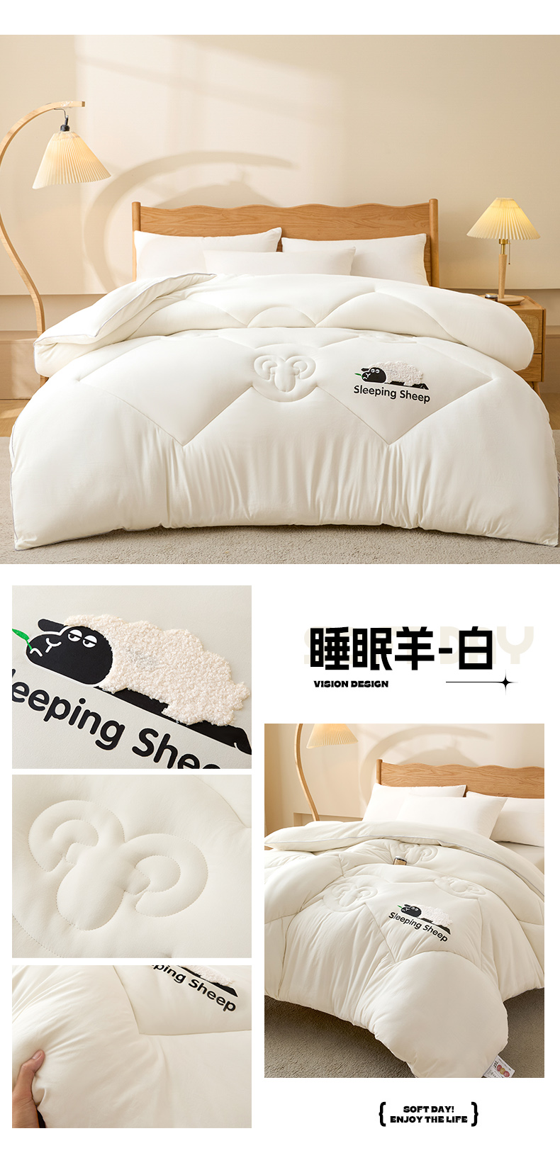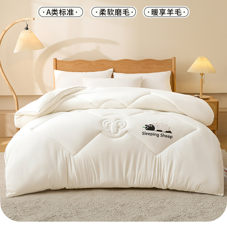 鑫琪莱家纺 2025新款A类鄂尔多斯羊毛被子被芯 睡眠羊-白