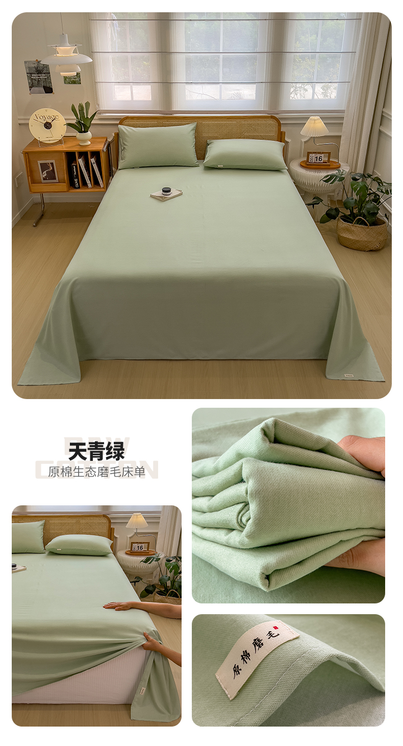 商品名称:芃成家纺 2025新款原棉生态磨毛单床单 松针绿