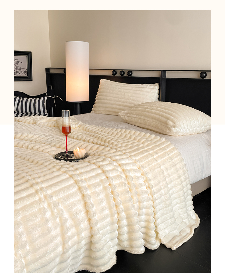 小叮当家纺仓储工厂店 2025新款230克仿兔绒大抽条毛毯(跨境可供) 抽条-绒毯米白