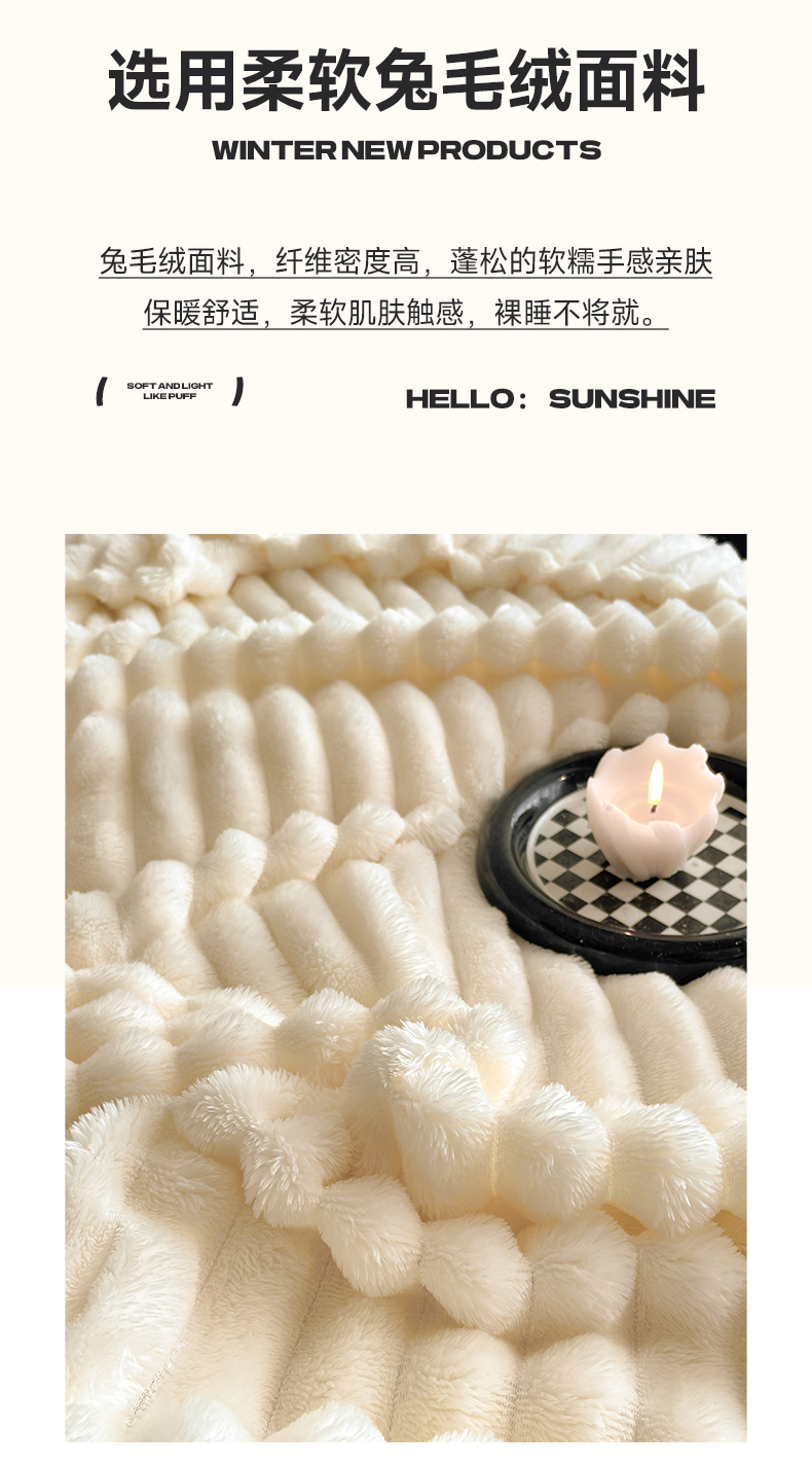 商品名称:小叮当家纺仓储工厂店 2025新款230克仿兔绒大抽条毛毯(跨境可供) 抽条-绒毯米白
