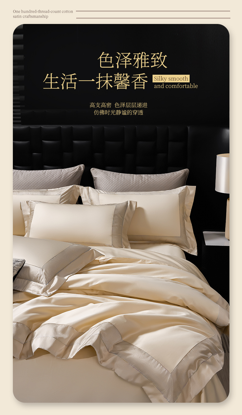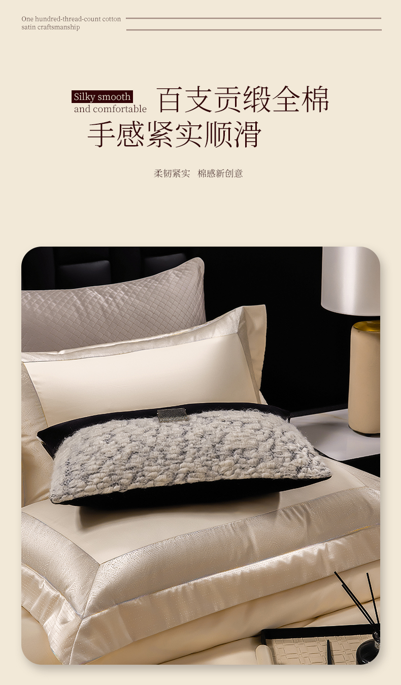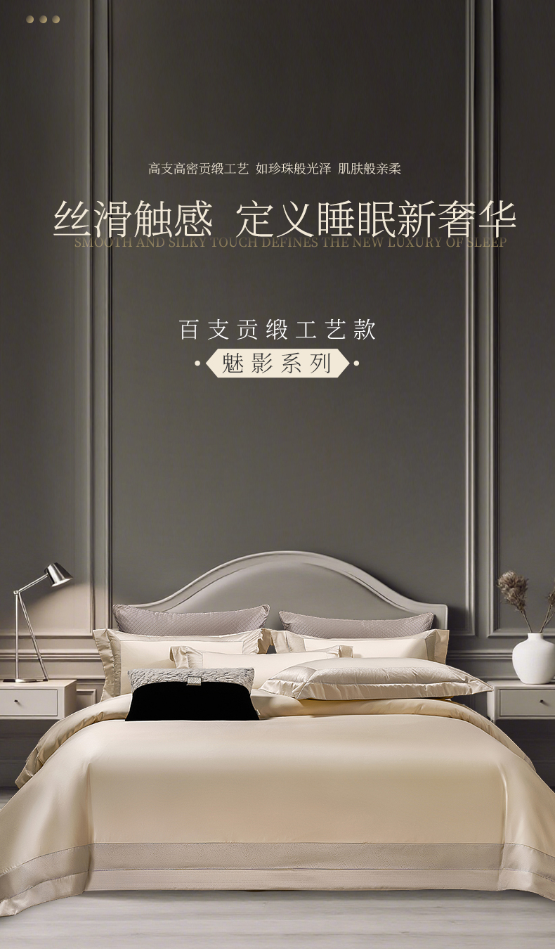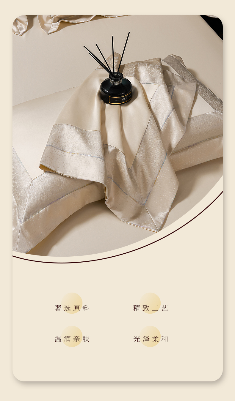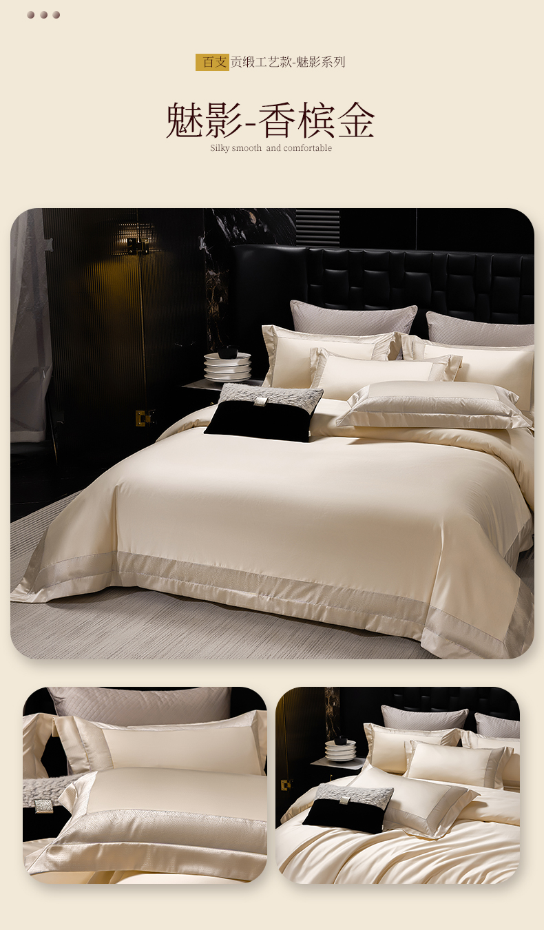 商品名称:元元家居(元元被业) 2025秋冬新款百支长绒棉纯棉贡缎工艺款四件套-魅影系列 魅影-香槟金