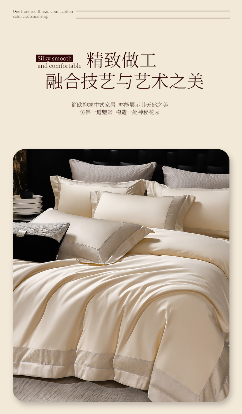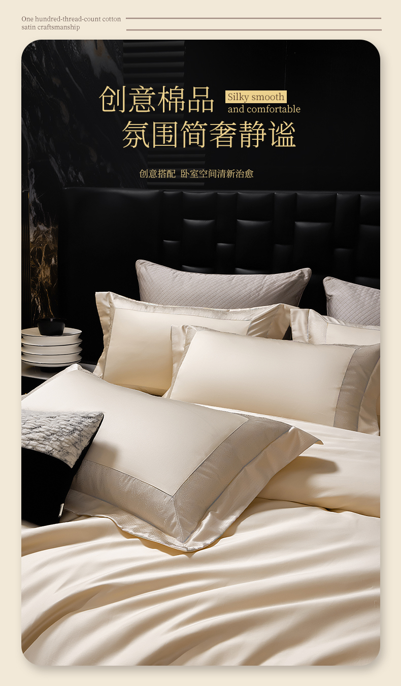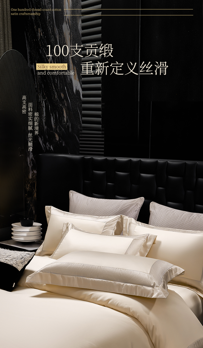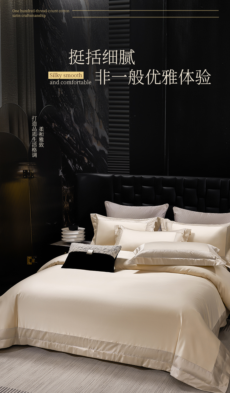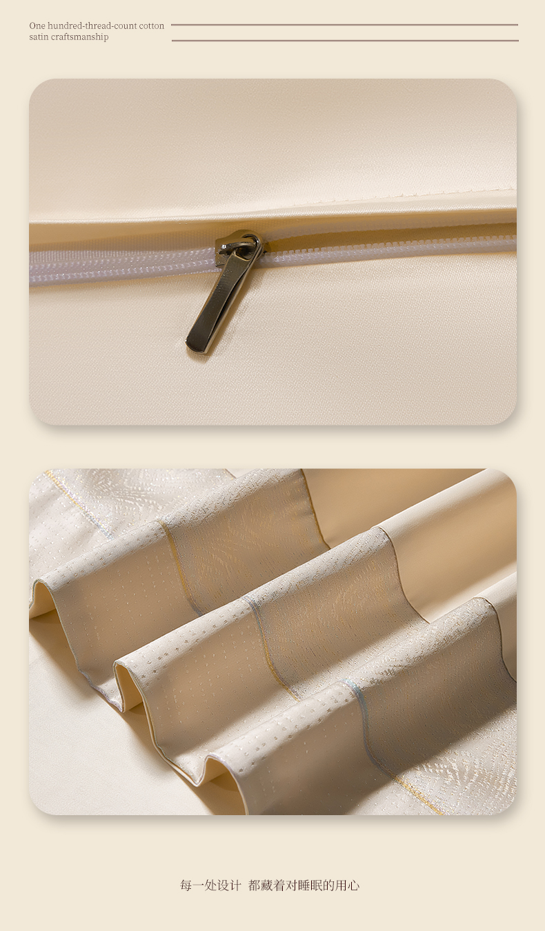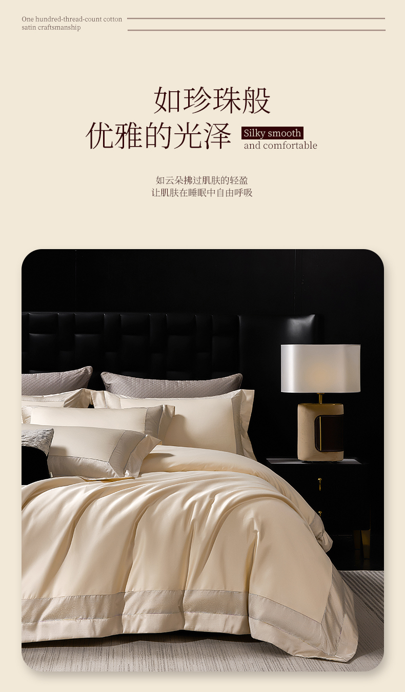 商品名称:元元家居(元元被业) 2025秋冬新款百支长绒棉纯棉贡缎工艺款四件套-魅影系列 魅影-香槟金
