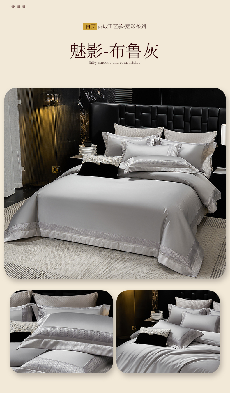 (总)元元家居(元元被业) 2025秋冬新款百支长绒棉纯棉贡缎工艺款四件套-魅影系列,魅影-布鲁灰,魅影-典雅白,魅影-香槟金,魅影-优雅粉