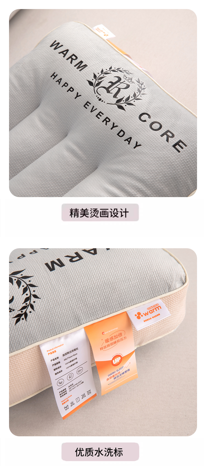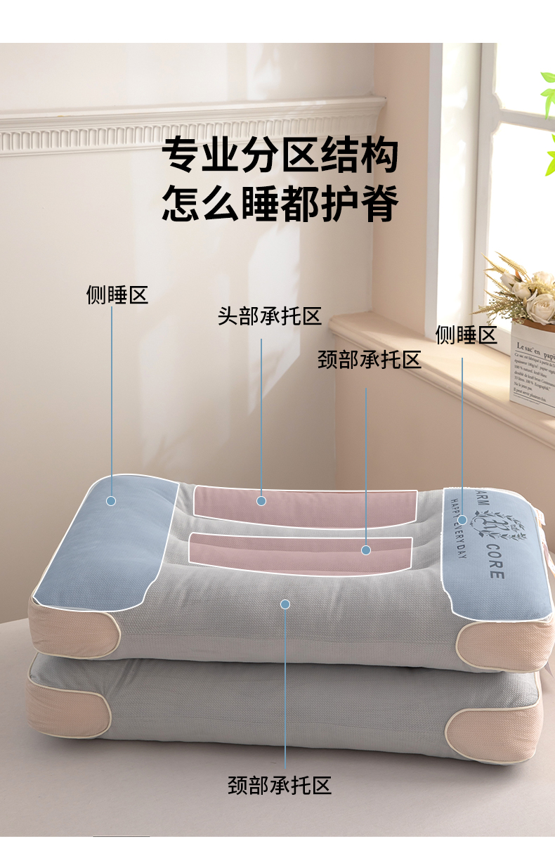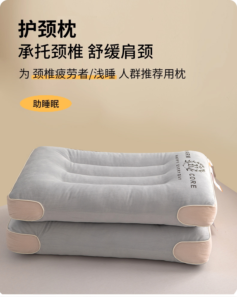 (总)枕之坊 2025新款肩颈释压倍暖枕枕头枕芯,肩颈释压倍暖枕-灰色,肩颈释压倍暖枕-白色