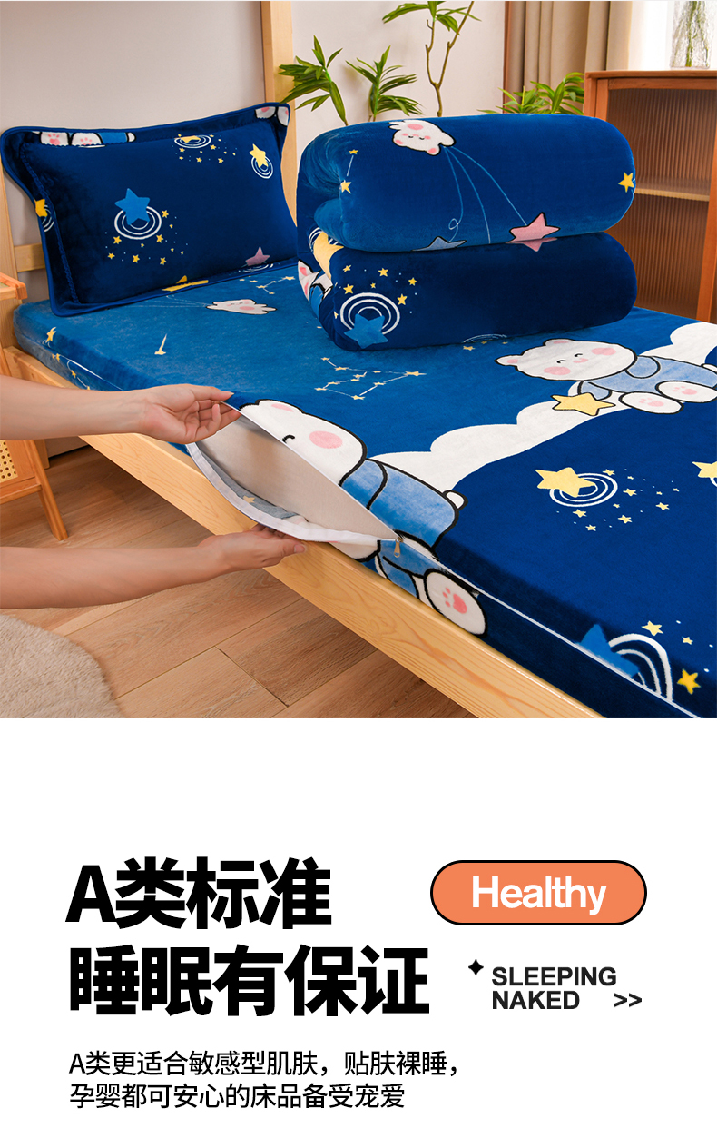 商品名称:居尚家纺 2025新款牛奶绒学生三件套床褥套床笠三件套 草莓熊